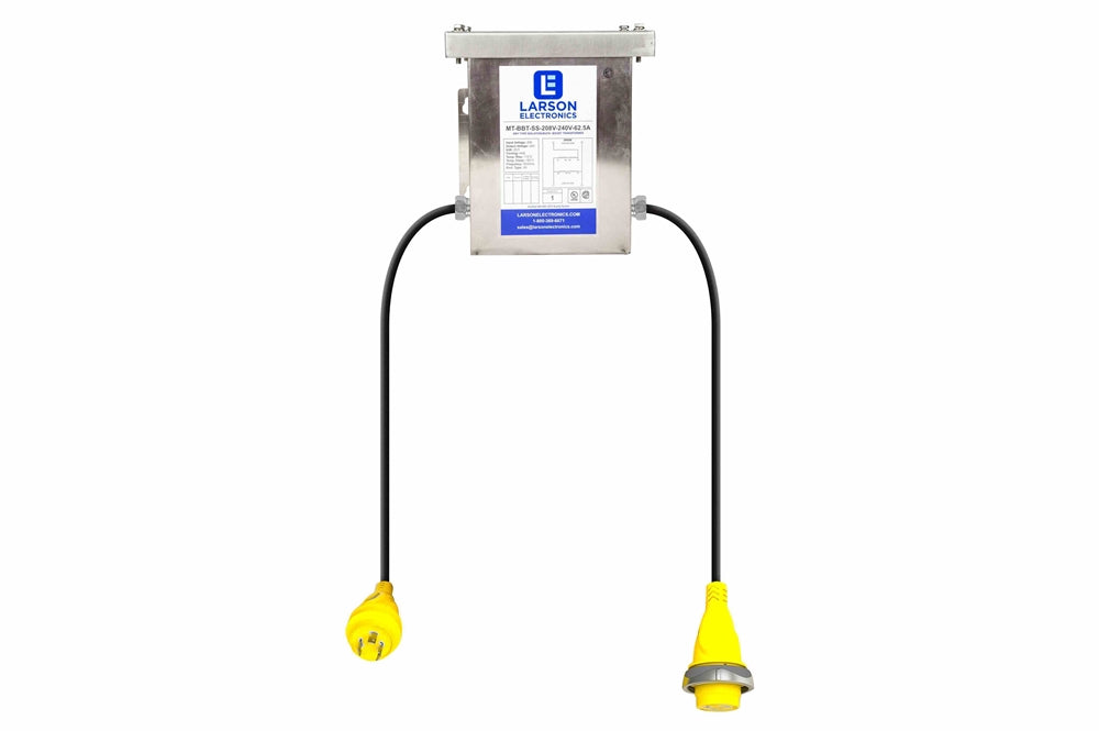 The MPD-MT-BBT-208V-240V-43.9A-2X2FT-CS63-WP single phase step-up prewired Buck and Boost Transformer from Larson Electronics is powerful, reliable,and designed with the environment in mind. Suitable for both indoor and outdoor applications, the MPD-MT-BBT-208V-240V-43.9A-2X2FT-CS63-WP provides increased reliability, higher efficiency, protection against critical equipment failures and an extra level of protection by isolating the power source from the connected device. The lower operating costs, lower heat emissions and lower cost of ownership make this transformer ideal for a wide range of applications and businesses. The MPD-MT-BBT-208V-240V-43.9A-2X2FT-CS63-WP is a prewired transformer for customer installation and is equipped with 2` of 6/4 SOOW cable on each side connected to the transformer with a waterproof CS6365C plug on the primary side and a waterproof CS6364C connector on the secondary side.