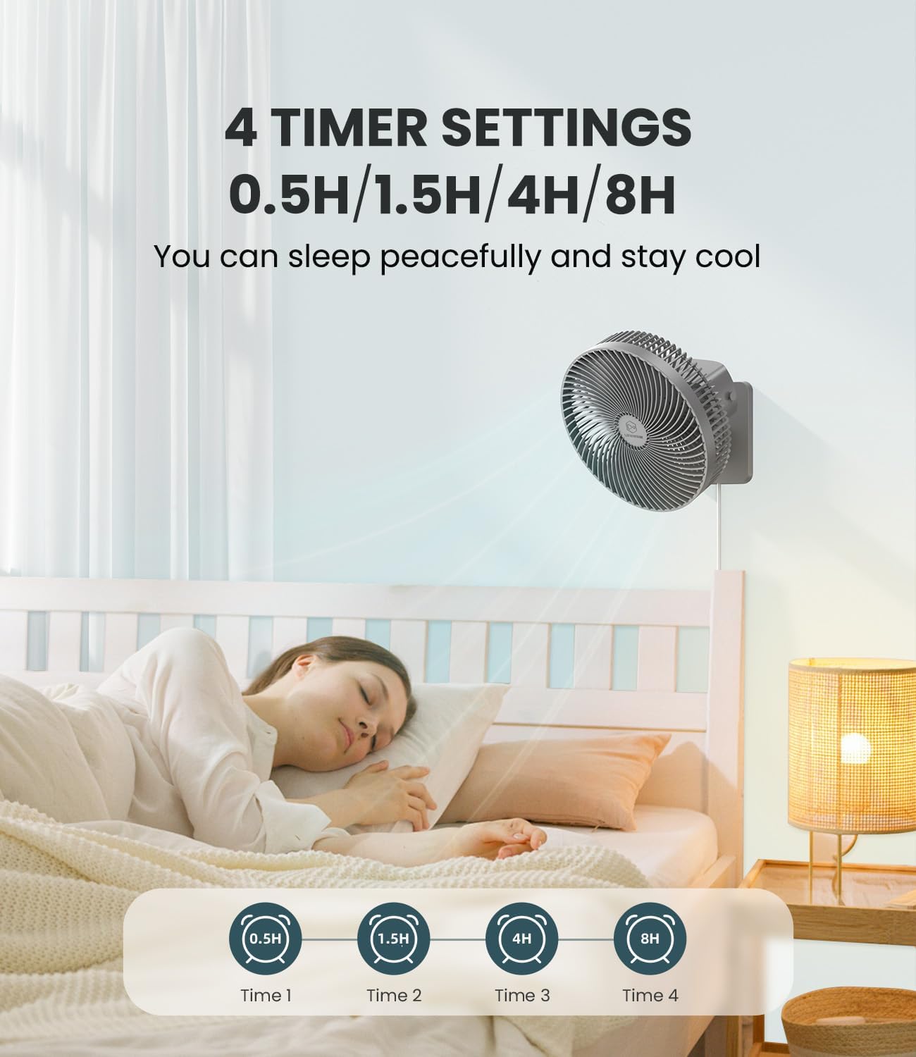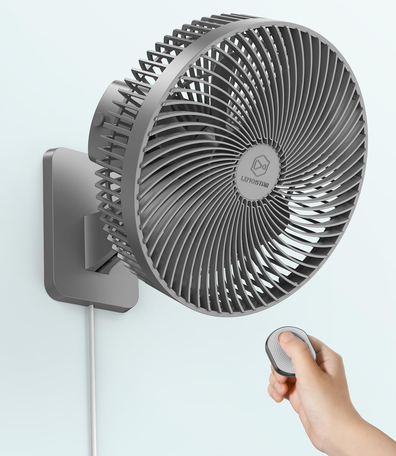 10 Inch Oscillating Wall Mounted Fan with Remote Control,High Velocity 4 Speeds Timer,Adjustable Tilt,5.9 ft Cord, Ultra Quiet,for Bedroom,Garage, RV, Office-Grey