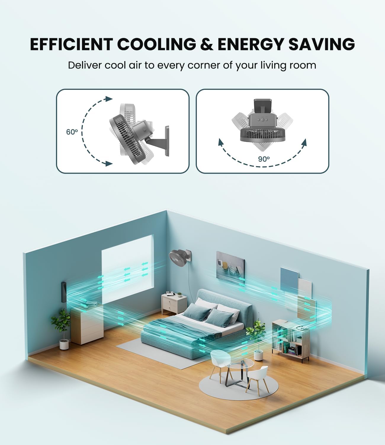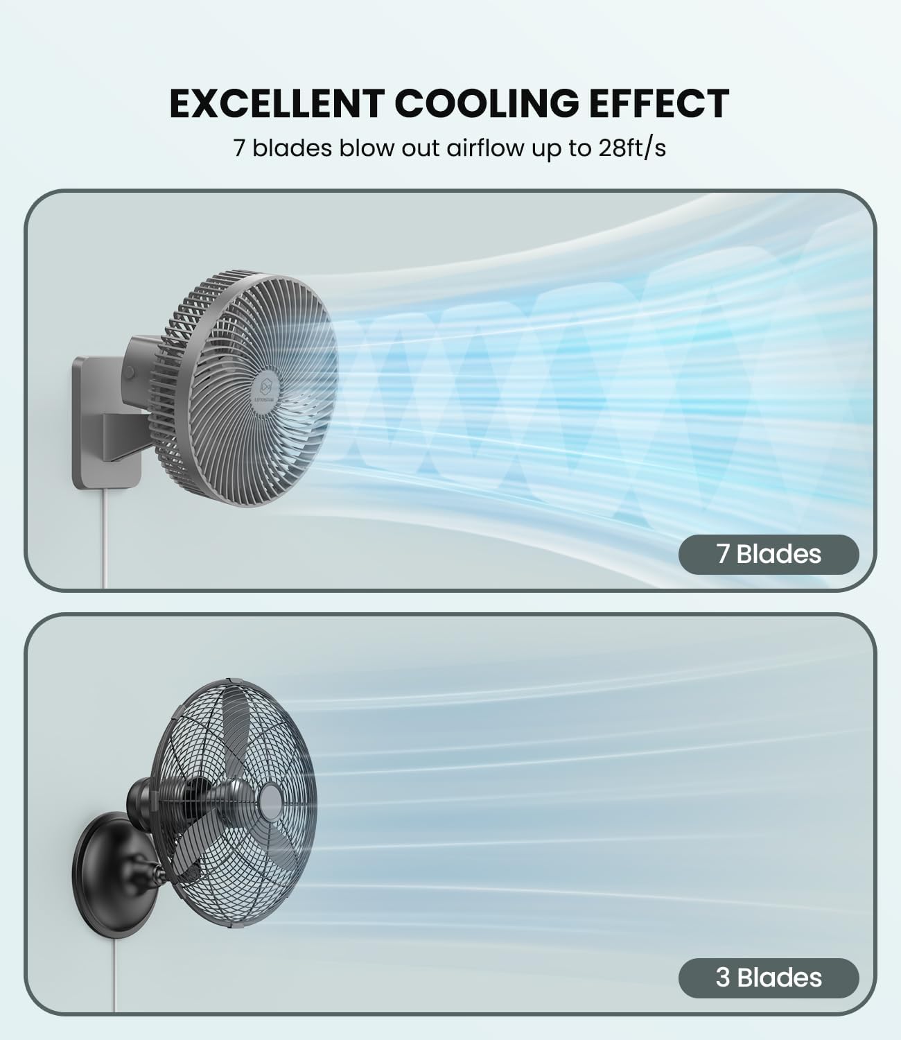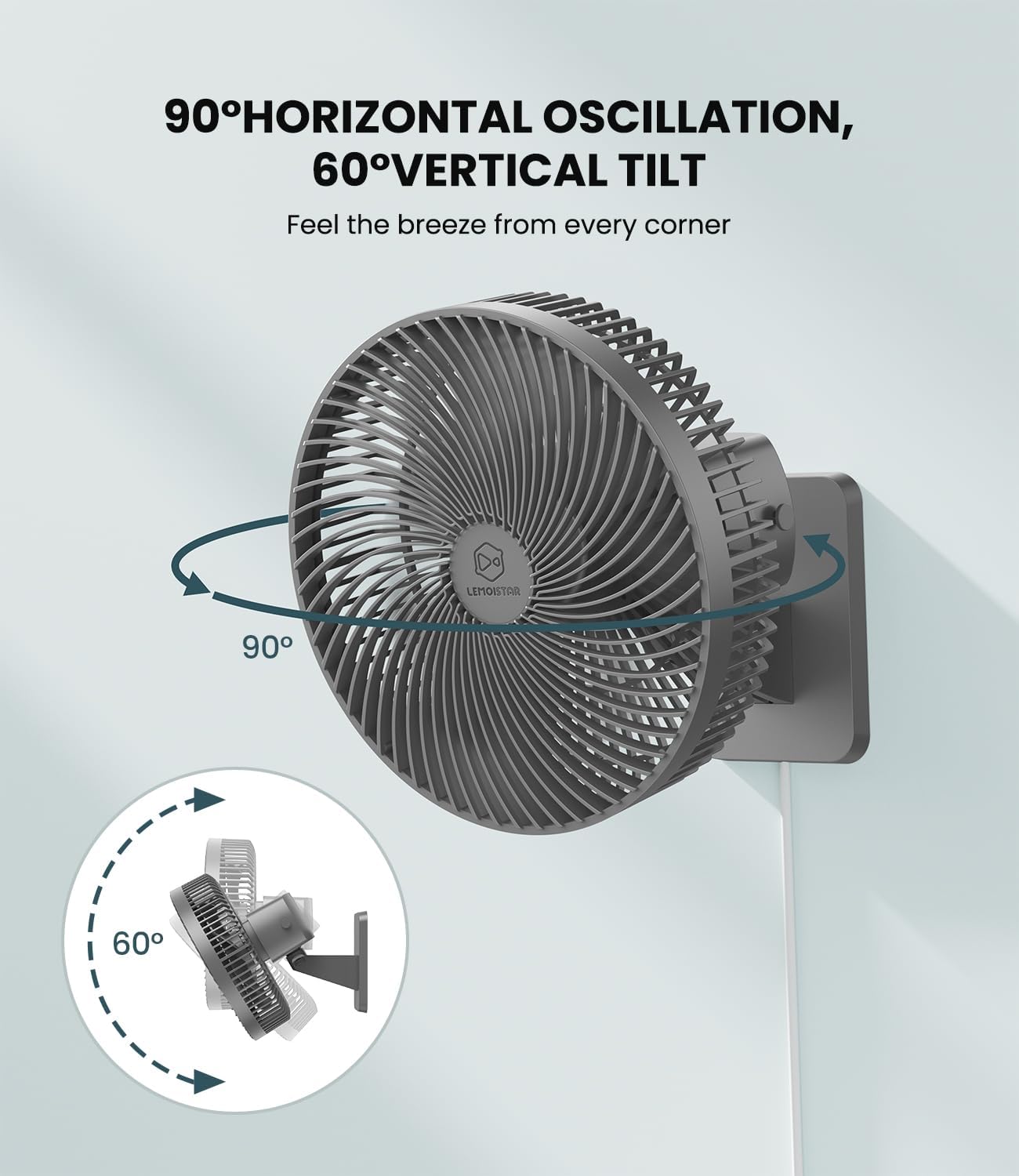 [OSCILLATING COMFORT] This wall fan has a 90° side-to-side oscillation and a 60° vertical tilt distributes a cooling breeze across a wide area and allows you to get airflow from different directions.
