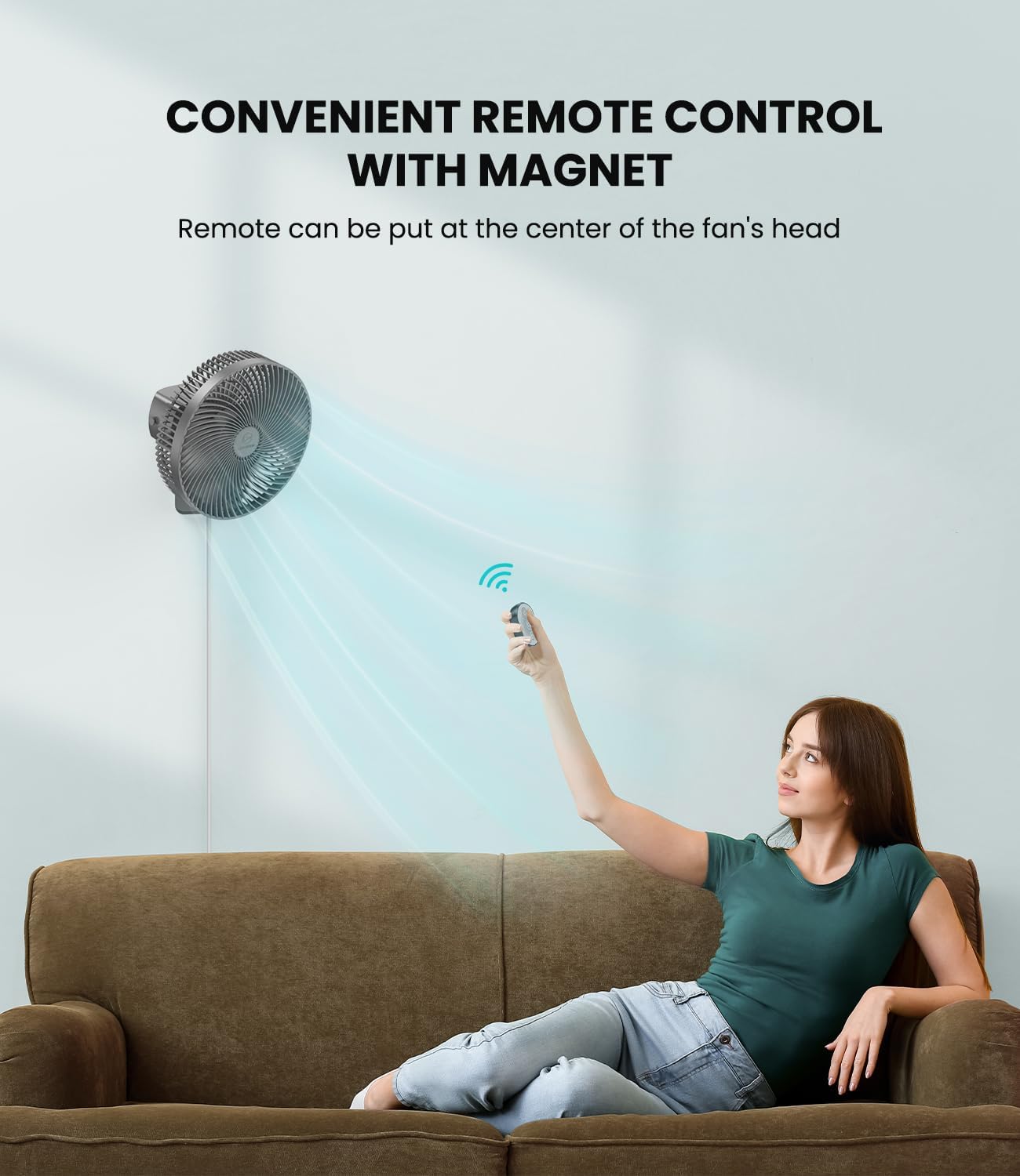 [REMOTE CONTROL & TIME SETTING] The fan comes with a remote control. You can adjust the fan speed and timer setting by the remote easily. The fan allows you to set timers. 4 timer setting can be changed(0.5/1.5/4/8 hours). Furthermore, the remote control can also be magnetically attached to the center of the fan head to prevent the remote control from being lost.