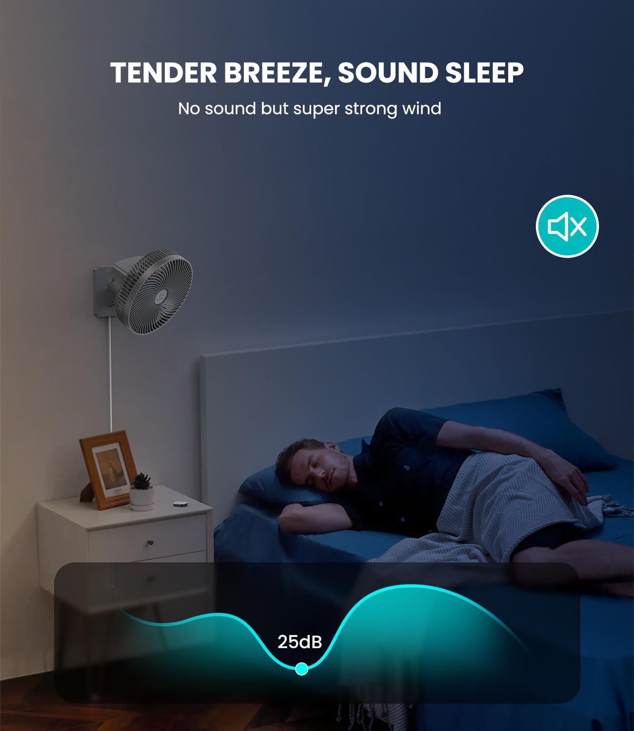 [4 SPEED OPTIONS & ULTRA QUIET] This portable wall fan comes with 4 speed settings(low/middle/high/super), You can set the airflow on the desired setting. The maximum fan speed arrives to 8m/s of airflow, which is very strong than it’s size. Adopts a 100% pure copper brushless motorand unique Optimum air cut design, the oscillating fan works ultra quiet with powerful wind.