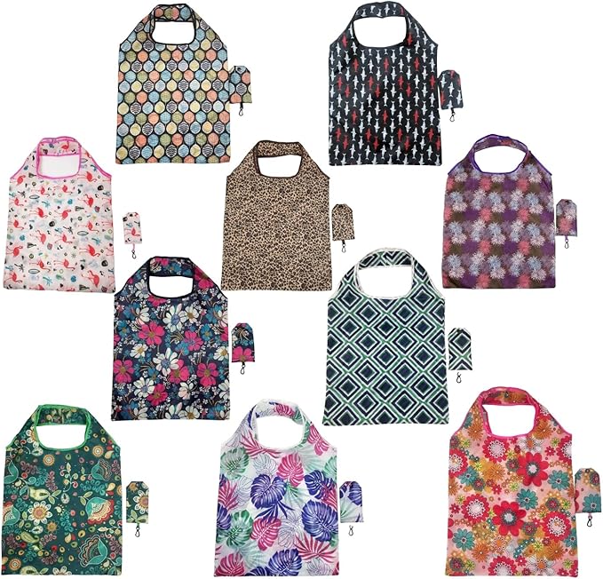 • 【Premium Material】:The package comes 10 pieces reusable shopping totes in different styles, the reusable shopping bags can be applied as grocery shopping bags, school bags, gift favor bags, hospitality bags, beach bags, snack bags, picnic bags, farming bags, etc. Suitable fo