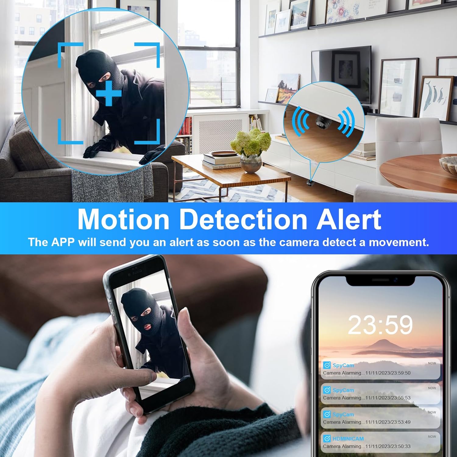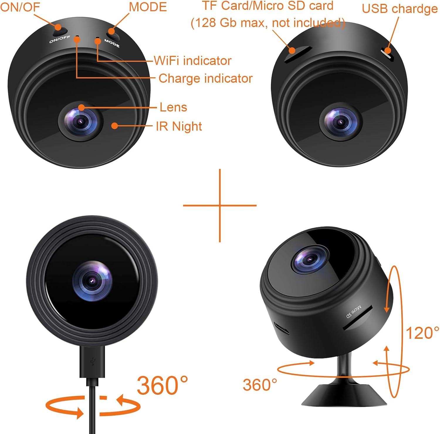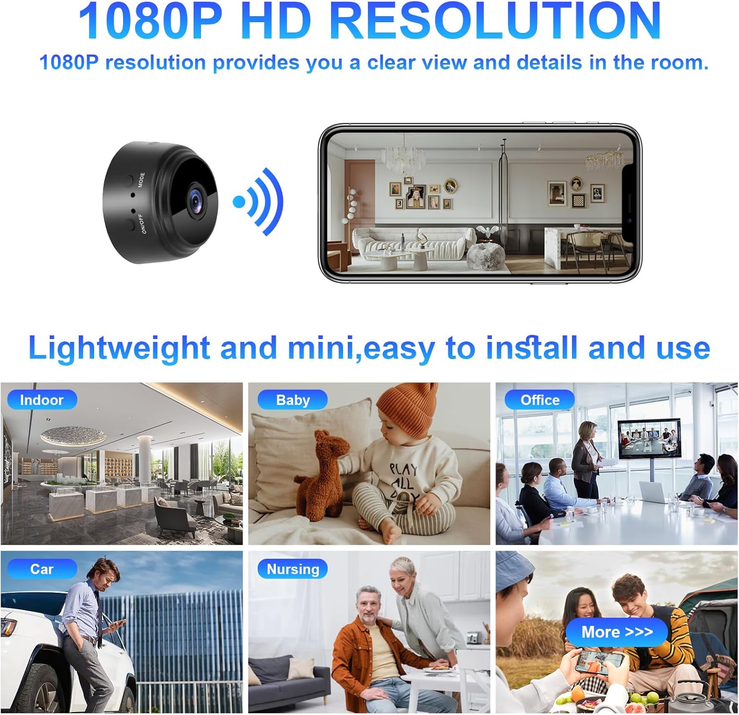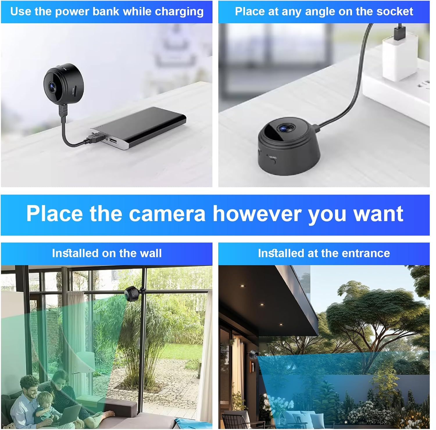 Powered by a 170mAh rechargeable battery, the A9 allows placement anywhere indoors without needing a constant power supply. (Note: Battery life may be limited and intended for motion-triggered or short-term recording.)