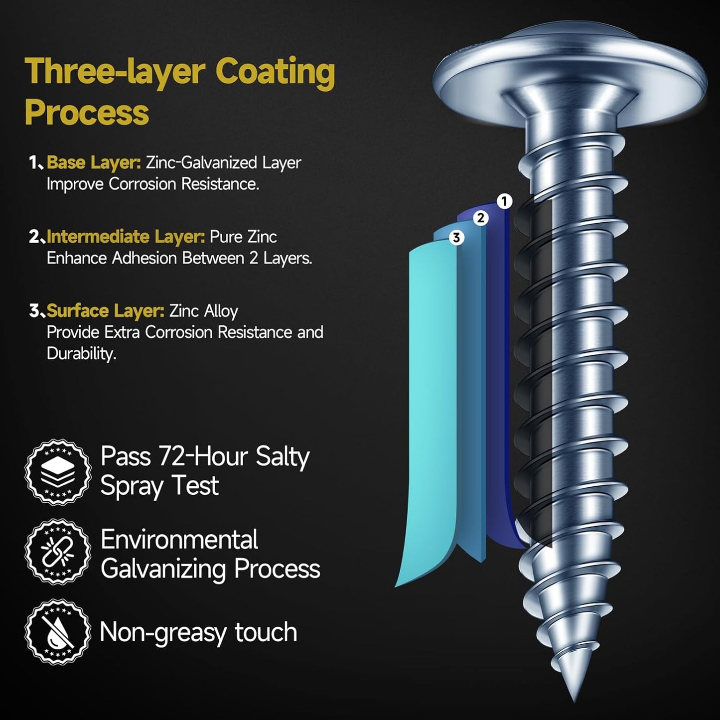 MATERIAL - High quality zinc plated carbon steel material. Mywish carbon steel black screws for wood have been rigorously tested, higher heat resistance, corrosion resistance and anti-rust effect in different extreme environment. Strong solid structure and longer lifespan. Please note that the magnetic properties of carbon steel always show weak magnetic properties due to the structure transformation reasons.