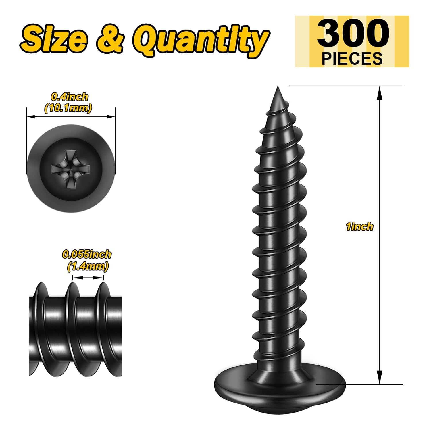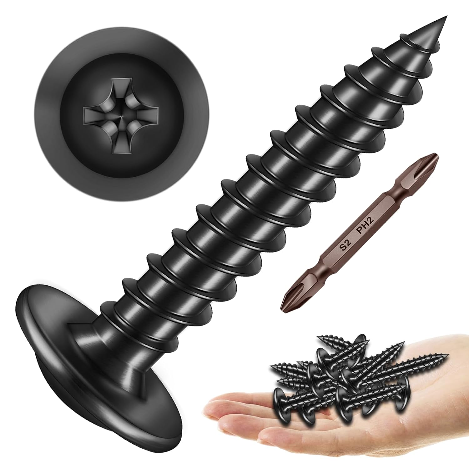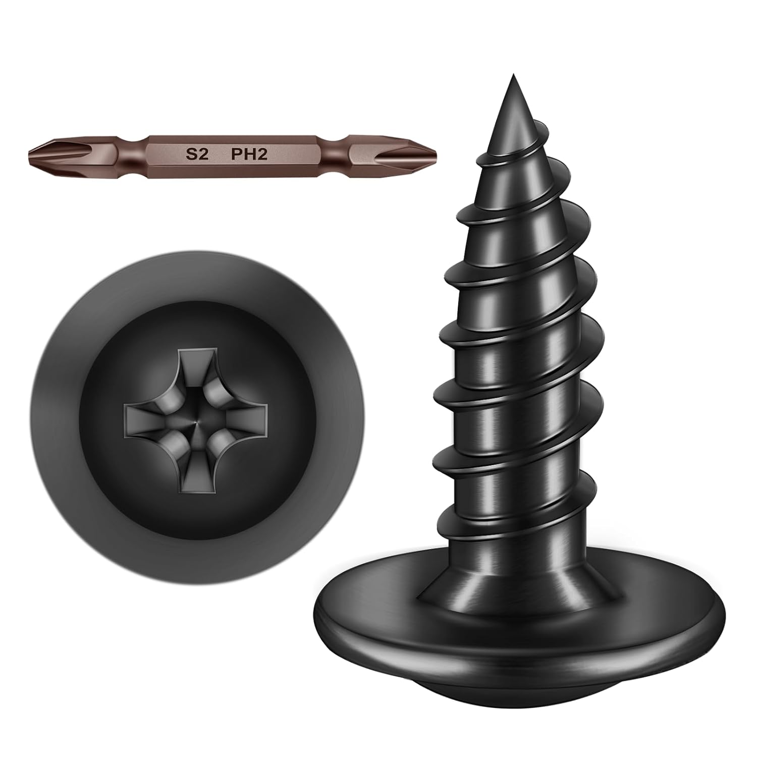 WIDE RANGE OF APPLICATIONS - 150 pieces cost effective set. Black screws for wood. Can be widely used as plastic screws, wood screws, cabinet screws, fence screws, household appliances. Also can be used in furniture repair, installation of ceiling frame, locks, DIY projects fasteners.