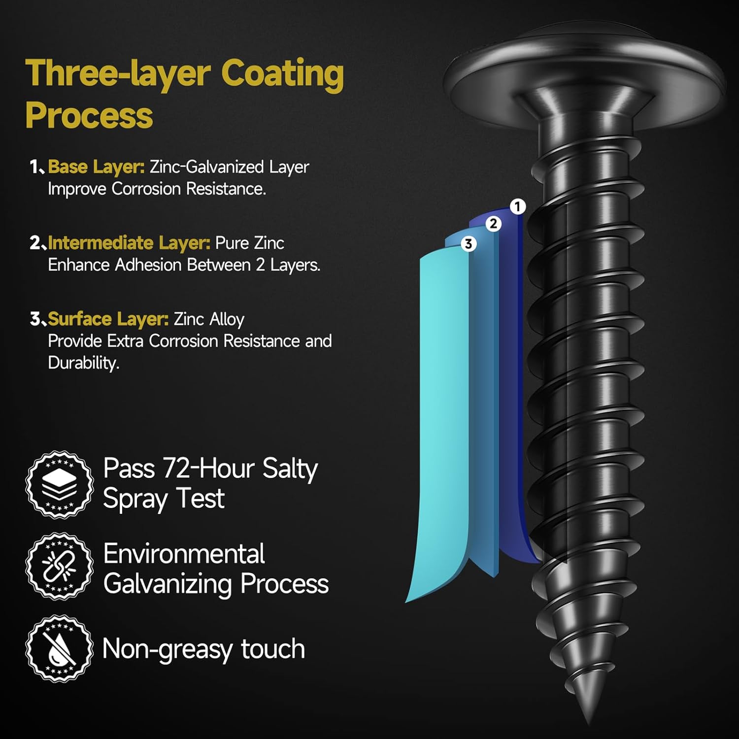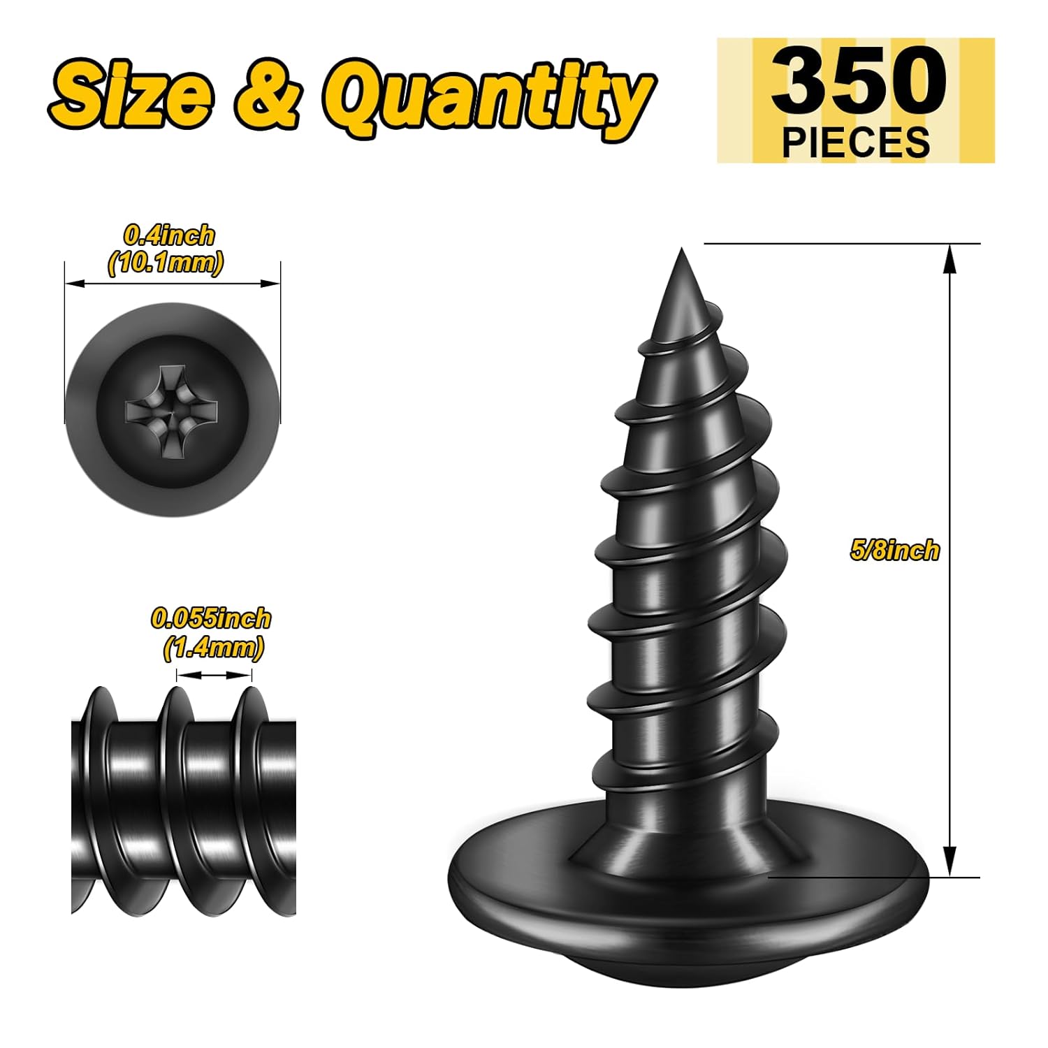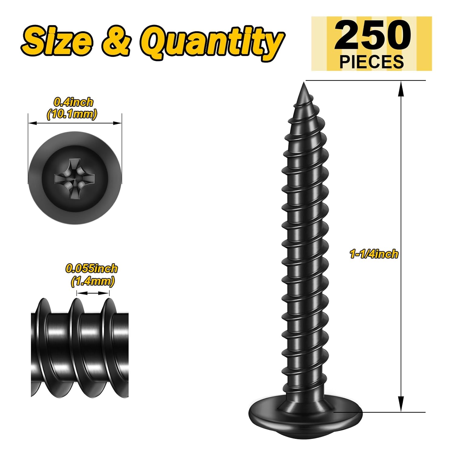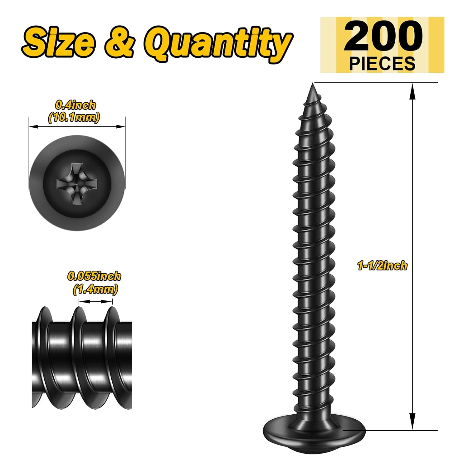 WIDE RANGE OF APPLICATIONS - 150 pieces cost effective set. Black screws for wood. Can be widely used as plastic screws, wood screws, cabinet screws, fence screws, household appliances. Also can be used in furniture repair, installation of ceiling frame, locks, DIY projects fasteners.