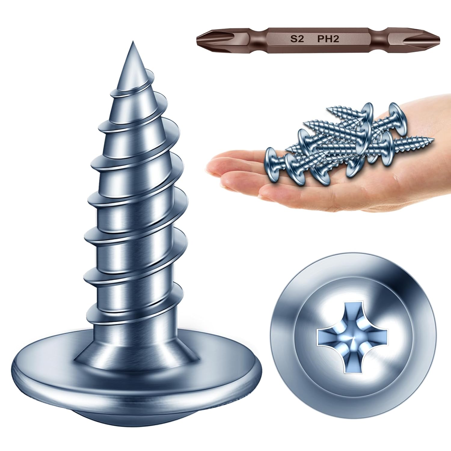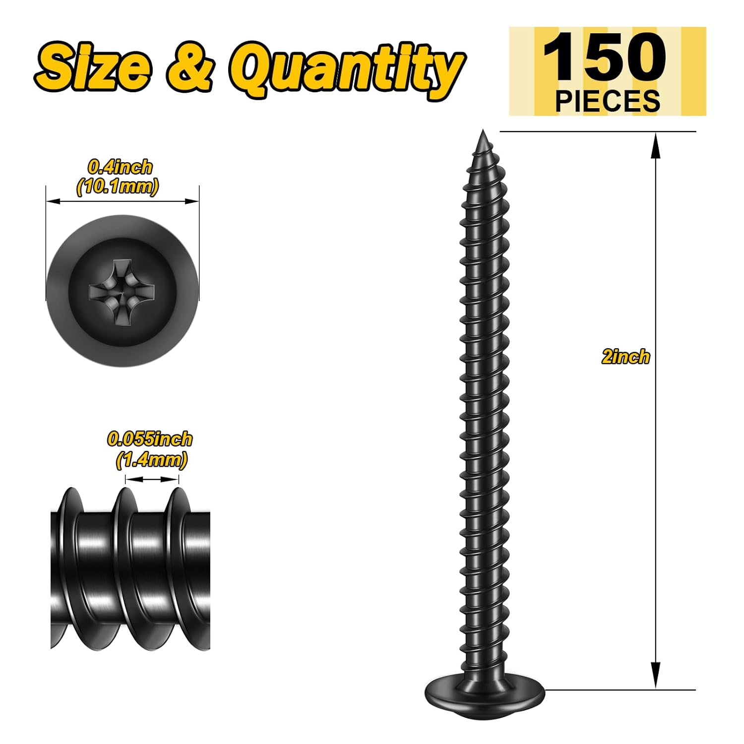 150Pcs #8 × 2" Black Screws for Wood, Phillips Truss Head Wood Screws, Quick Metal Self Tapping, Zinc Plated Steel, Truss Head Screws by Mywish