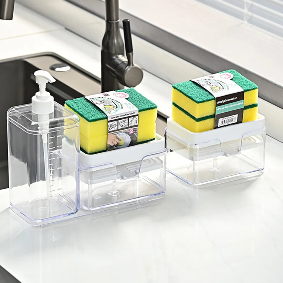 • 2-in-1 Design – Combines a soap dispenser and sponge tray in one unit for convenience and space-saving.