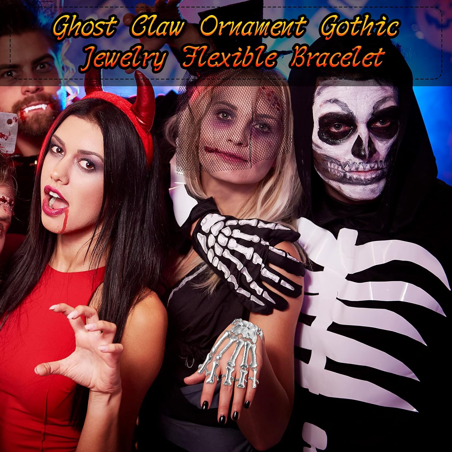 Jadive 2 Pieces Halloween Metal Skeleton Hand Bracelet Skull Finger Accessories Ghost Claw Ornament Gothic Jewelry Flexible Bracelet for Halloween Party Cosplay Costume Supplies