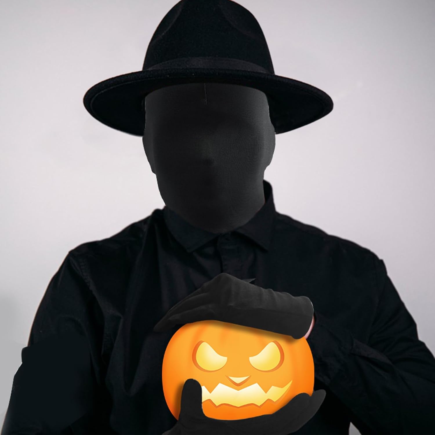 2Pcs Black Full Face Masks and Gloves Set Halloween Faceless Mask Spandex Morph Mask Full Head Masks for Adult Party Cosplay