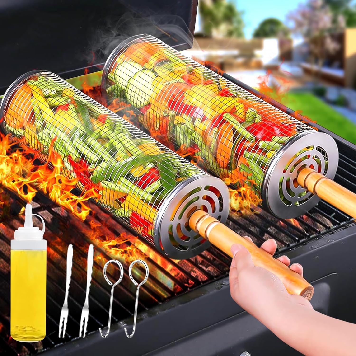 • 1 × Large Rolling Grill Basket