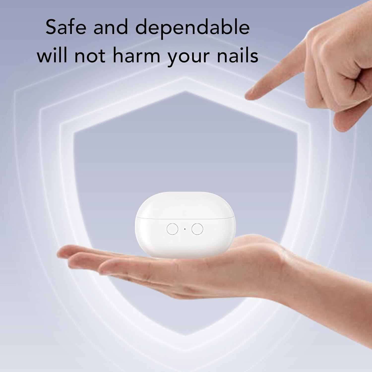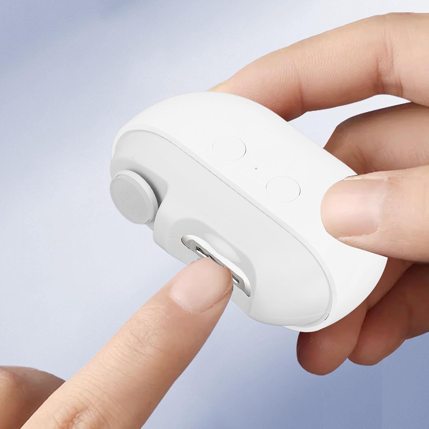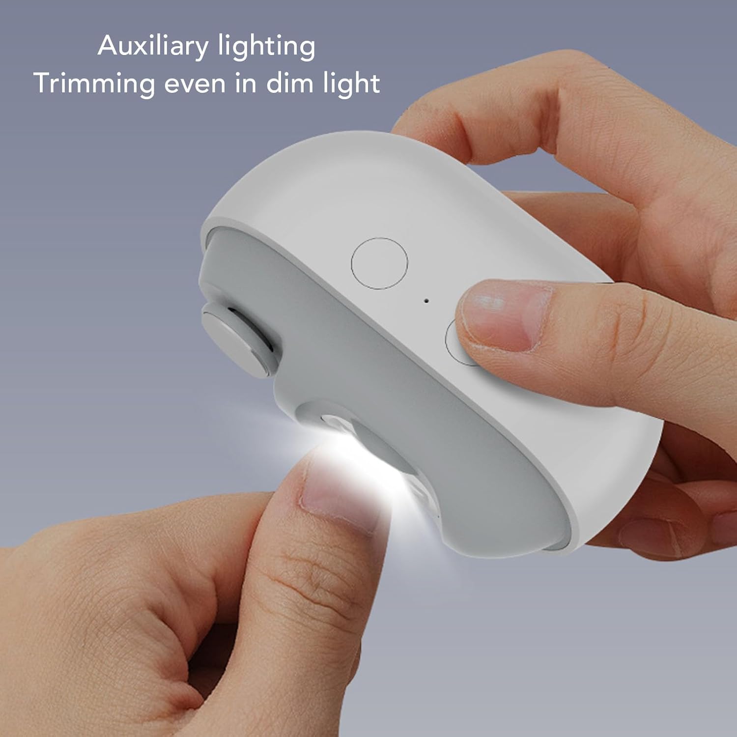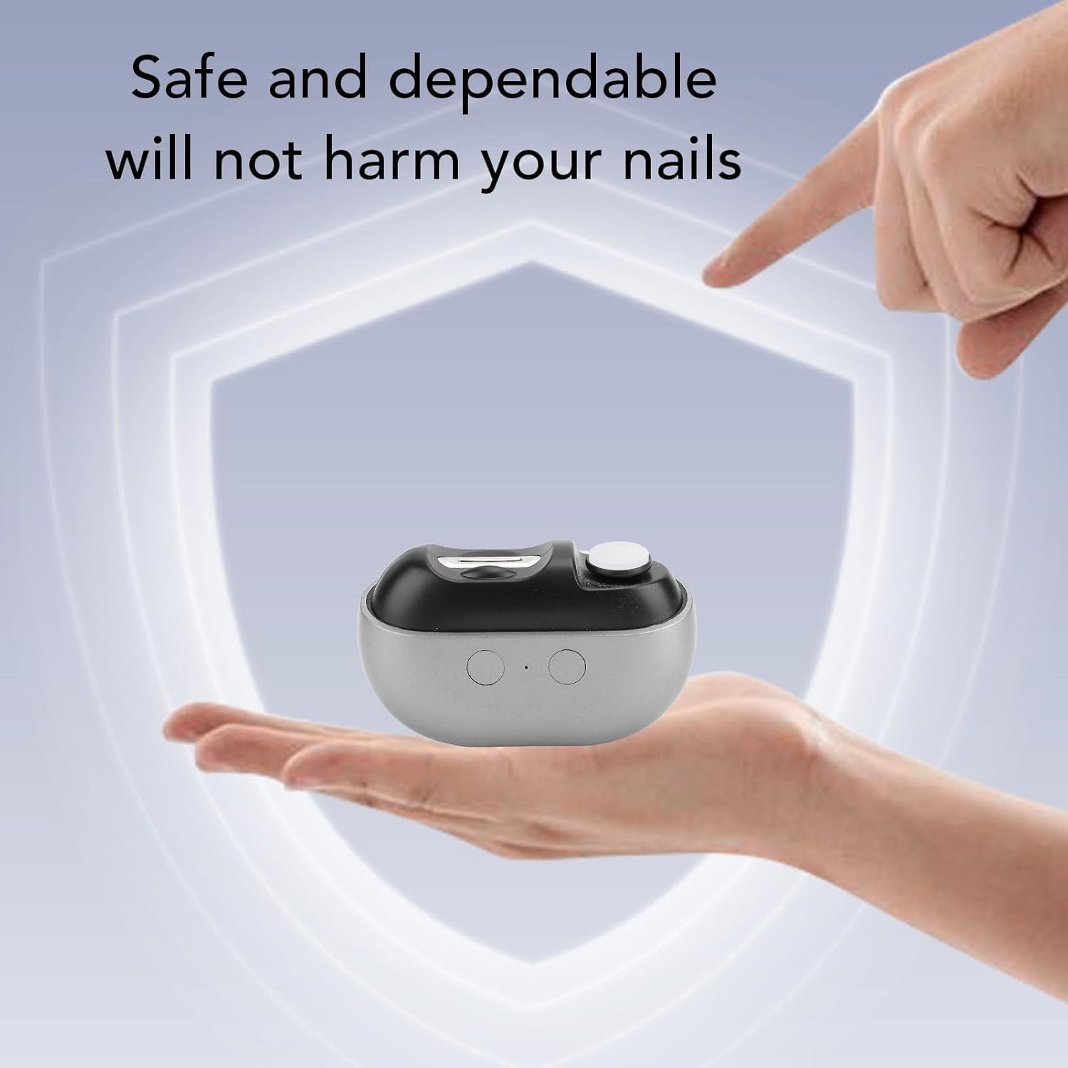 SAFETY DESIGN: The electric nail clipper features a rounded blade and protective hood to prevent accidental scratches, ensuring safety for sensitive fingers.