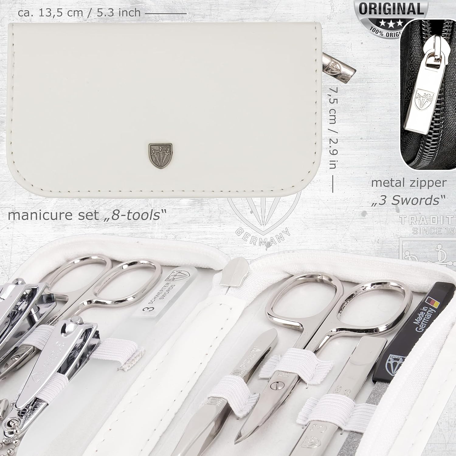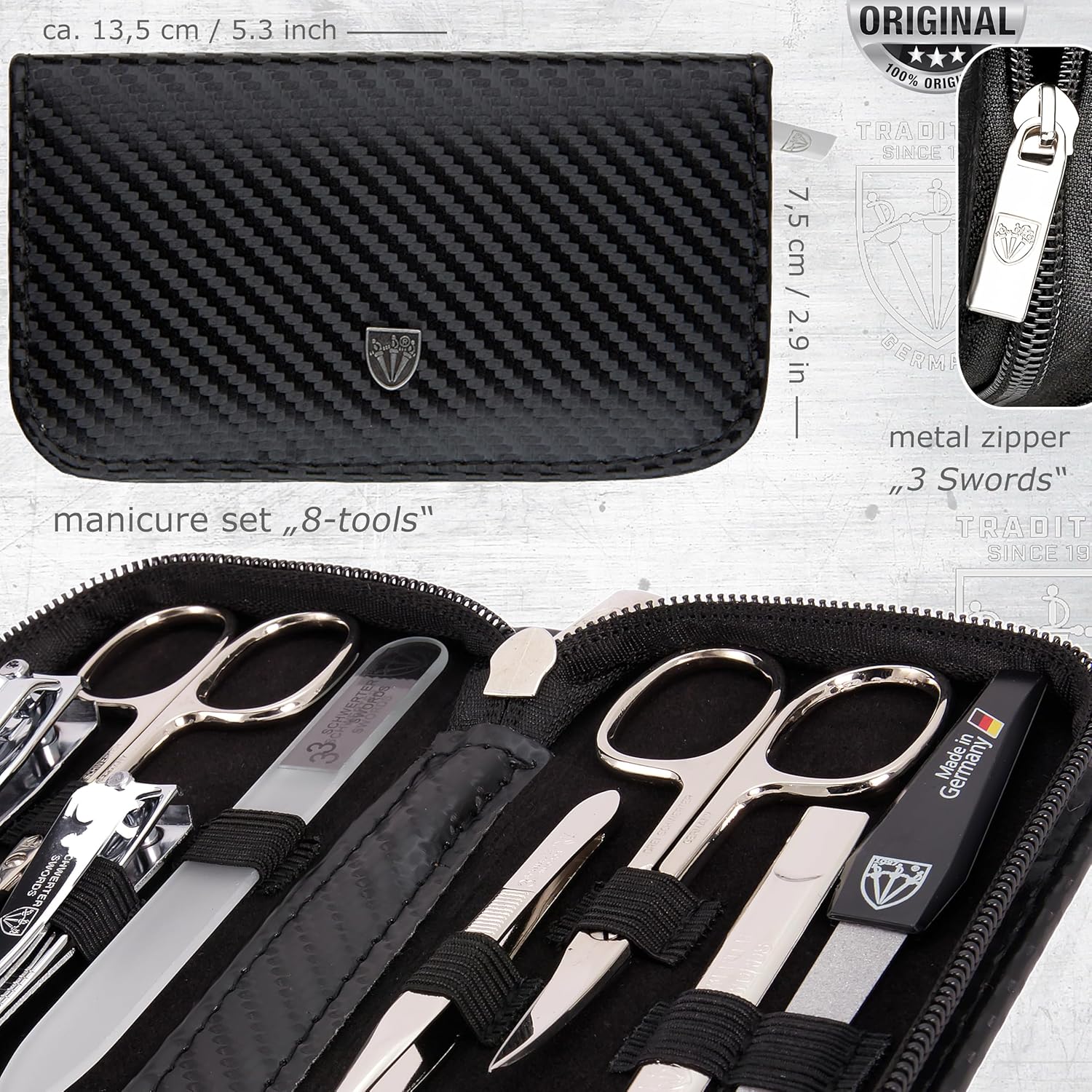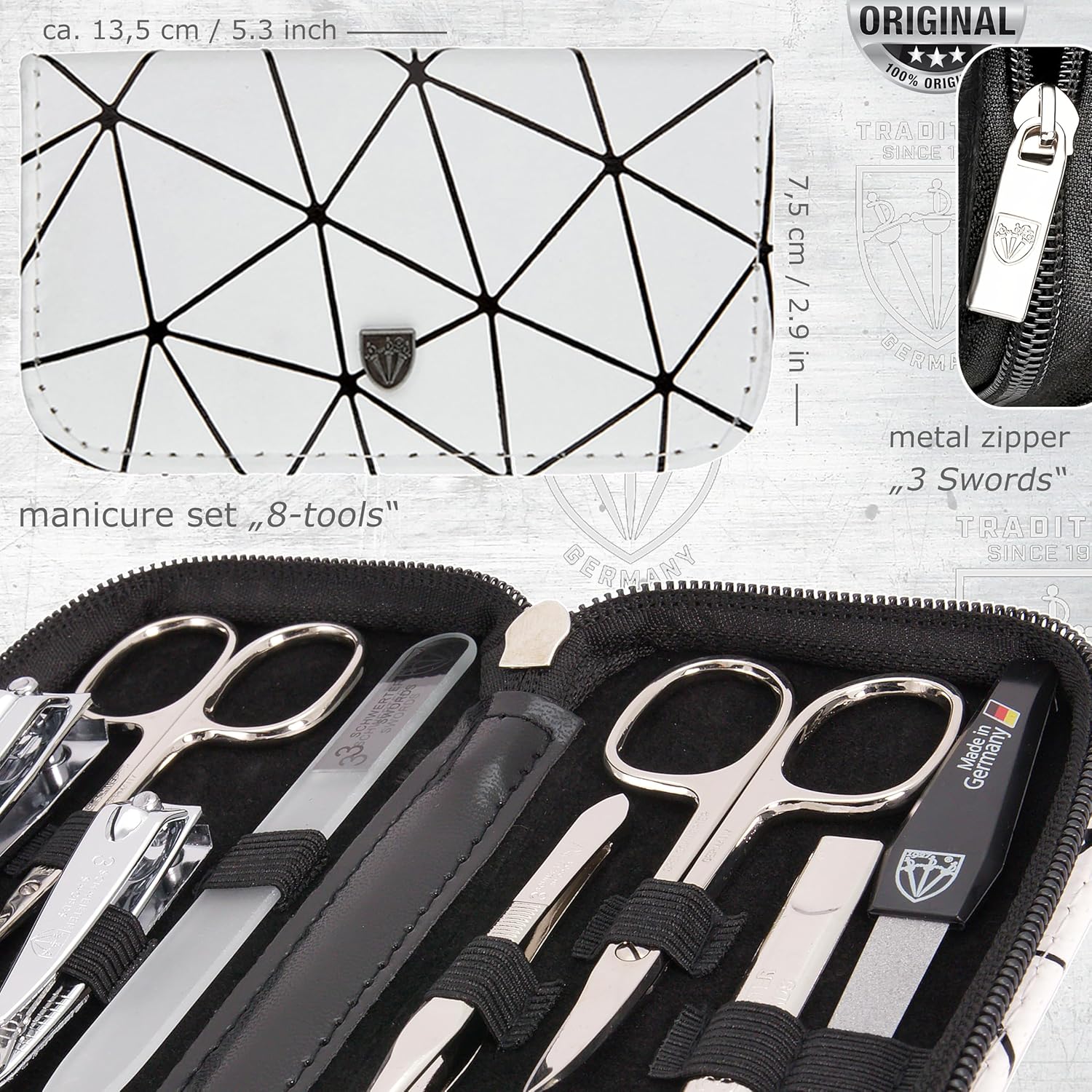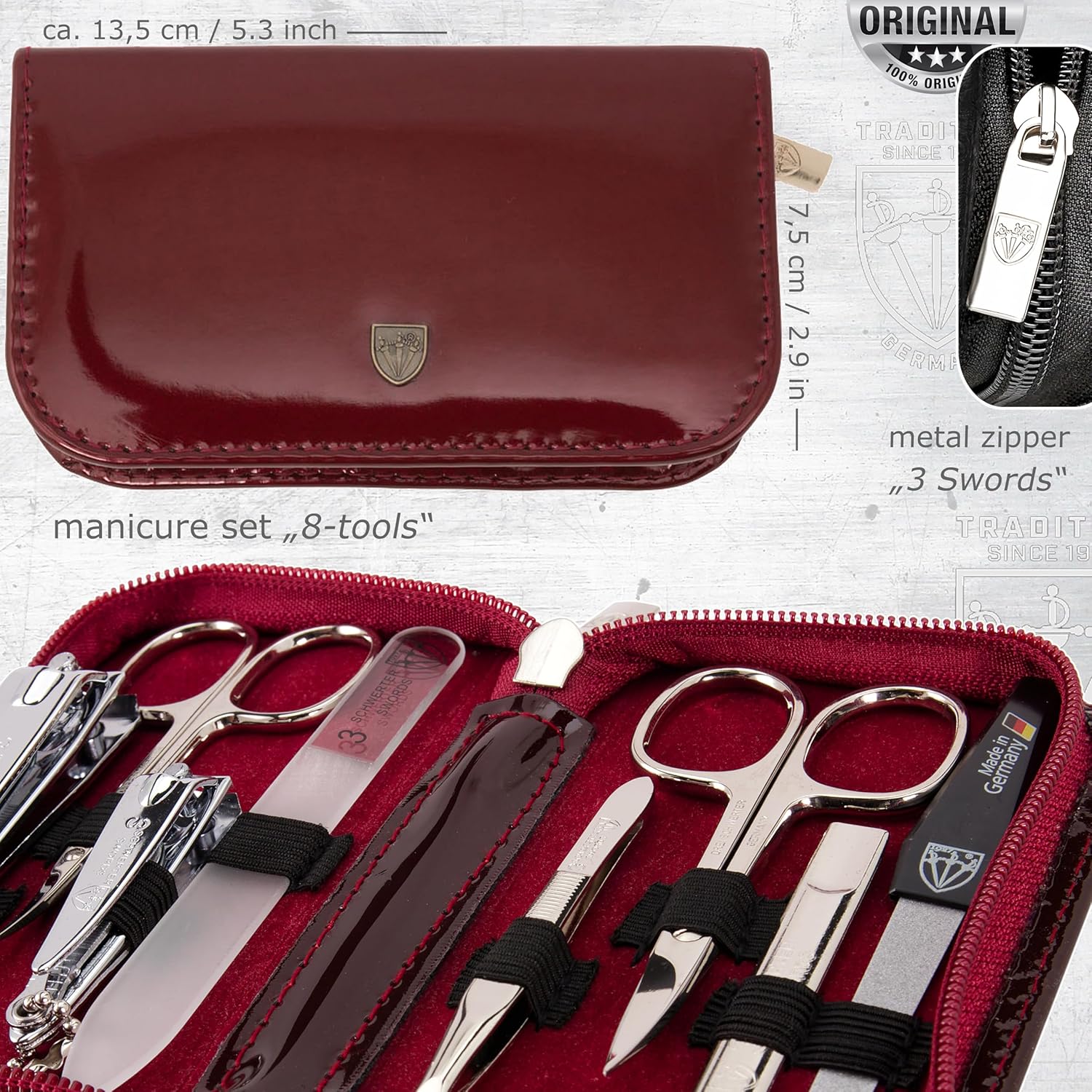 STEEL IMPLEMENTS: Hand made, bright nickel plated (protection against corrosion), polished and hardened. All sets come in an attractive gift box. Our manicure instruments are made in Solingen / Germany.