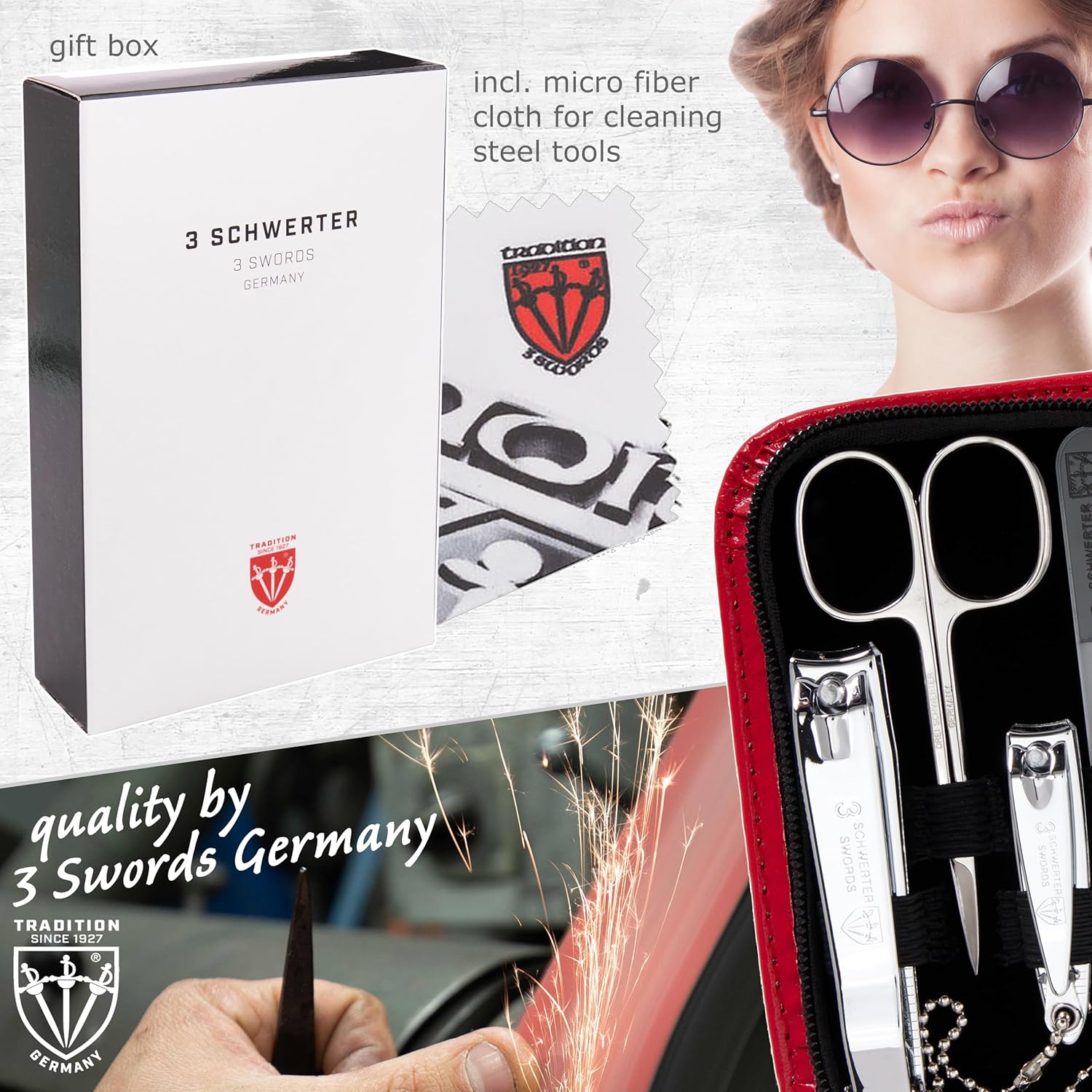NAIL CARE KIT from 3 Swords Germany with professional manicure and pedicure tools. Our sets for home and travel use convince trough highest levels of quality, modern design, durability and German engineering combined with a first class customer service.