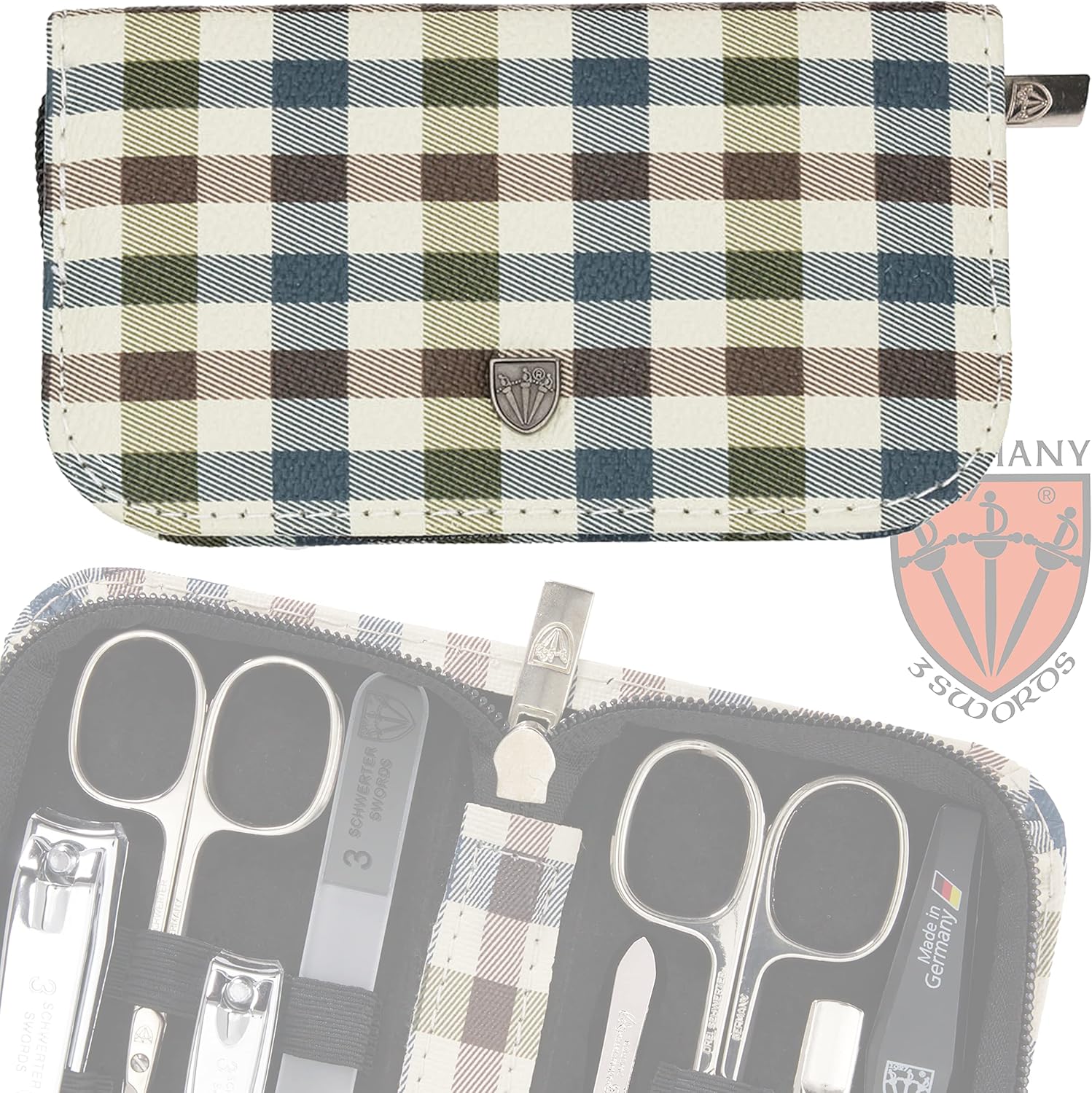 3 Swords Germany - brand quality 8 piece manicure pedicure grooming kit set for professional finger & toe nail care scissors clipper fashion leather case camou in gift box, Made in Germany
