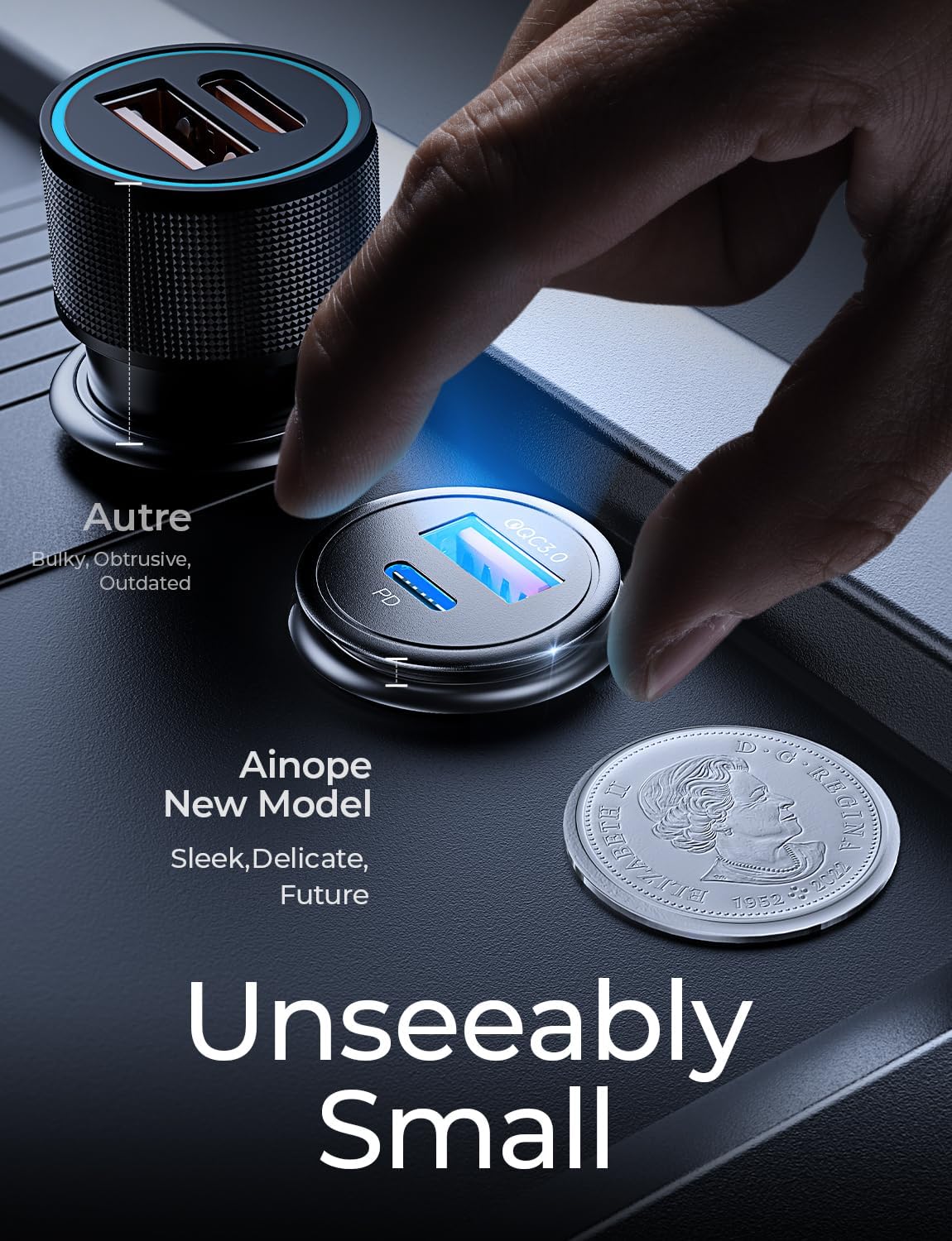 AINOPE 67.5W Mini Car Charger USB C Fast Charger, Cigarette Lighter Adapter, USB C Car Charger, Aviation-Grade Metal 12V USB Outlet for iPhone 17 16 Pro Max Air Samsung Android Electrical AccessoriesPL17-B08HYQLH1C