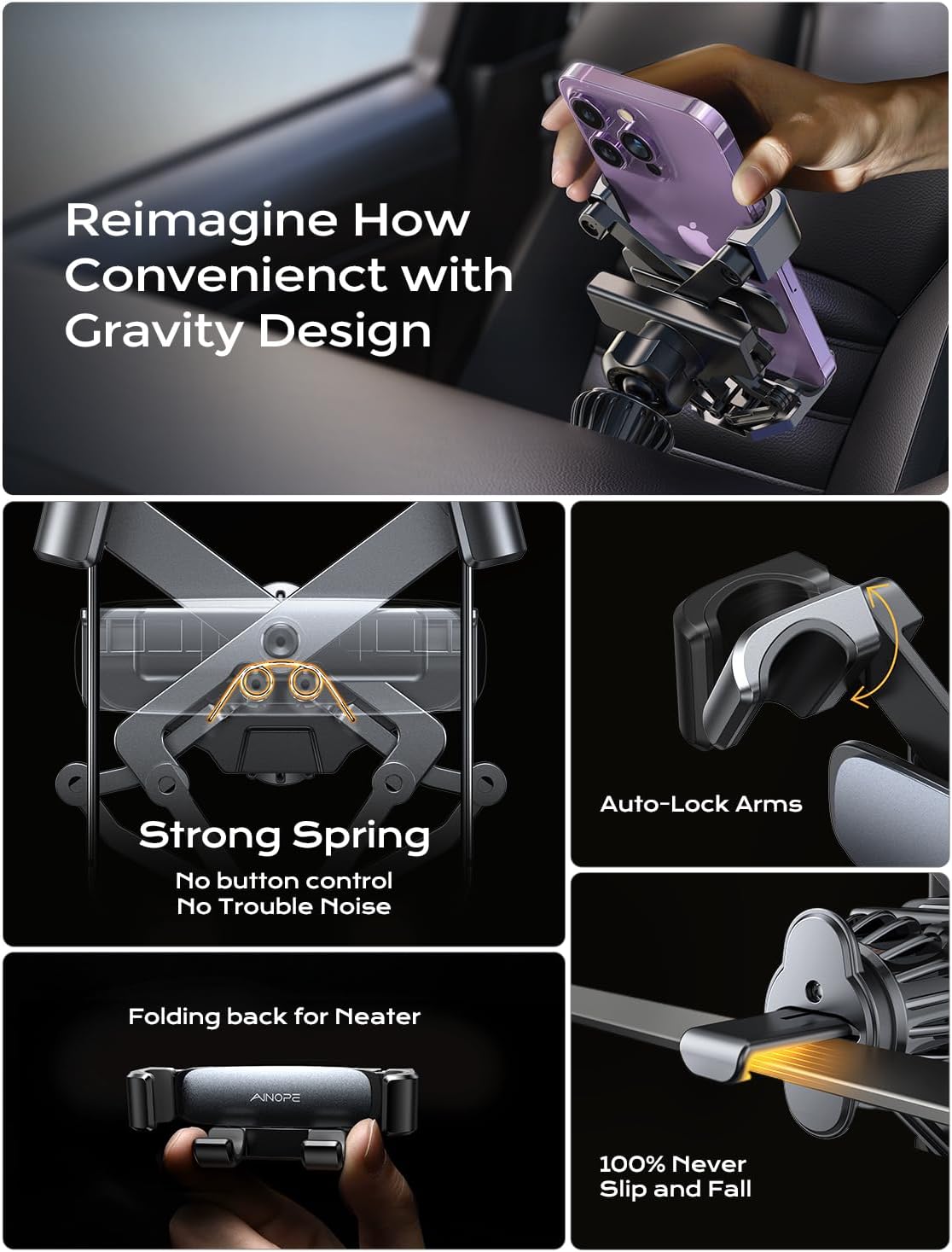 AINOPE Phone Mount for Car Vent 2024 Gravity Air Vent Car Phone Holder Mount for iPhone 16 pro max with Newest Vent Clip Hand Free Cell Phone Car Mount fits for iPhone 15 Plus Samsung Android Phones