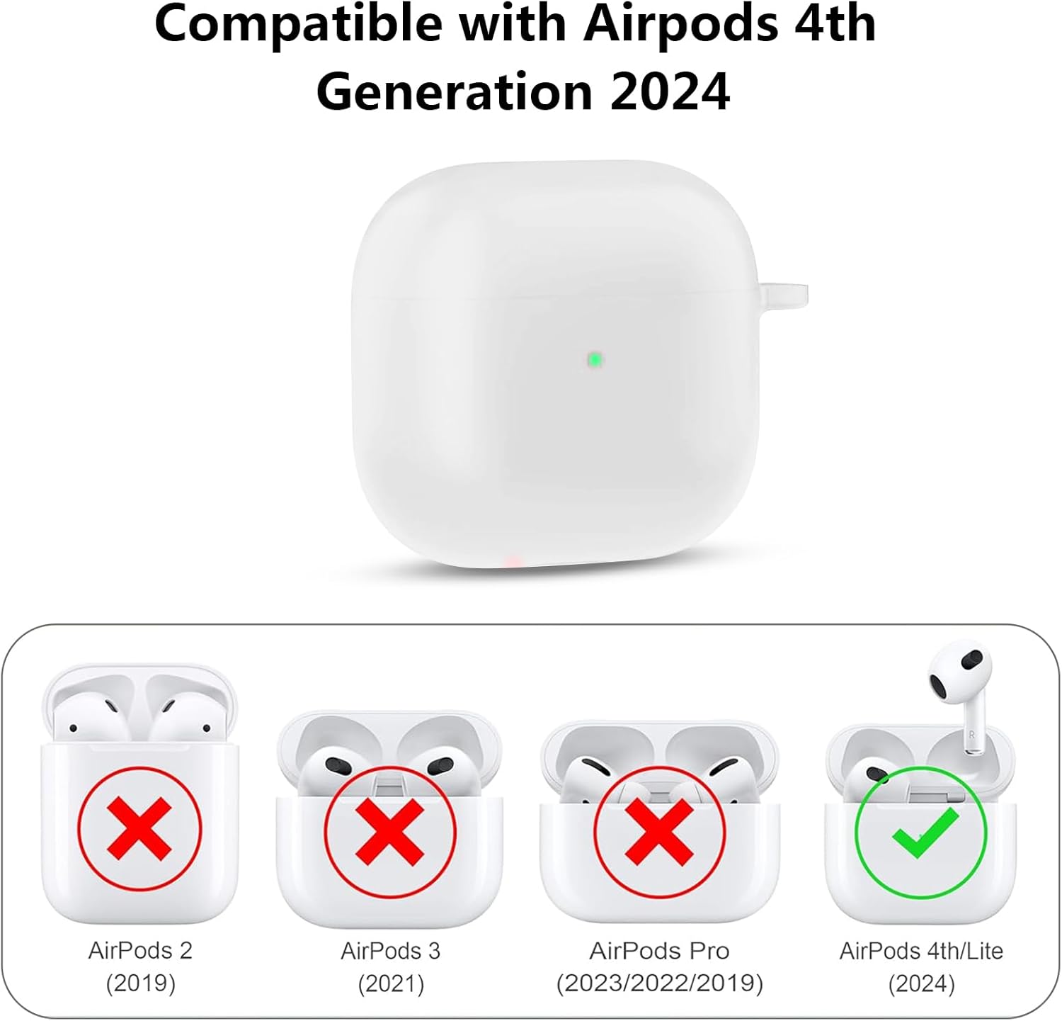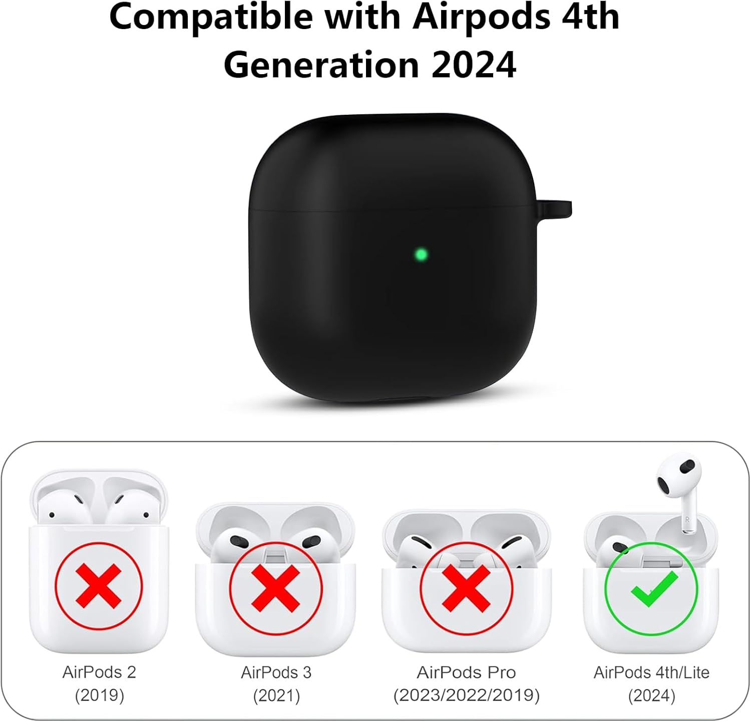 • Latest Version: This preimium silicon case perfectly fits for Airpods 4 released 2024, easy access to the installation and to the paring button of the protective case for your Airpods, (Not inculded earphone main unit and charging case)