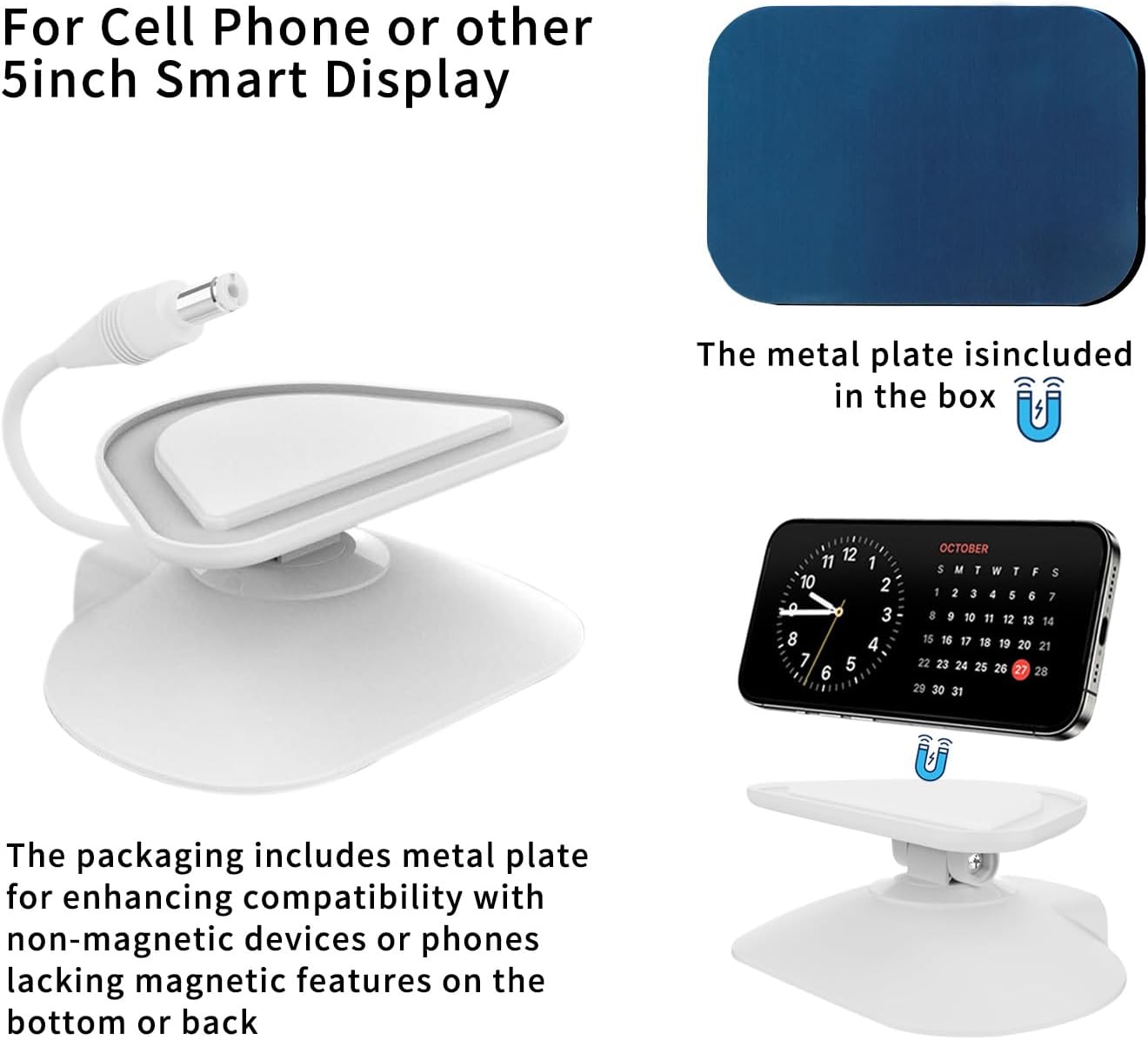 【Stand for Echo Show 5 (3rd Gen) 】 The adjustable stand compatible with Echo Show 5 (3rd Gen, 2023 release).Not compatible with Show 5 (1st Gen & 2nd Gen)【Note:Only a desk stand, Do NOT include device.】Compatible with iPhone 12,13 & 14 smart display device.