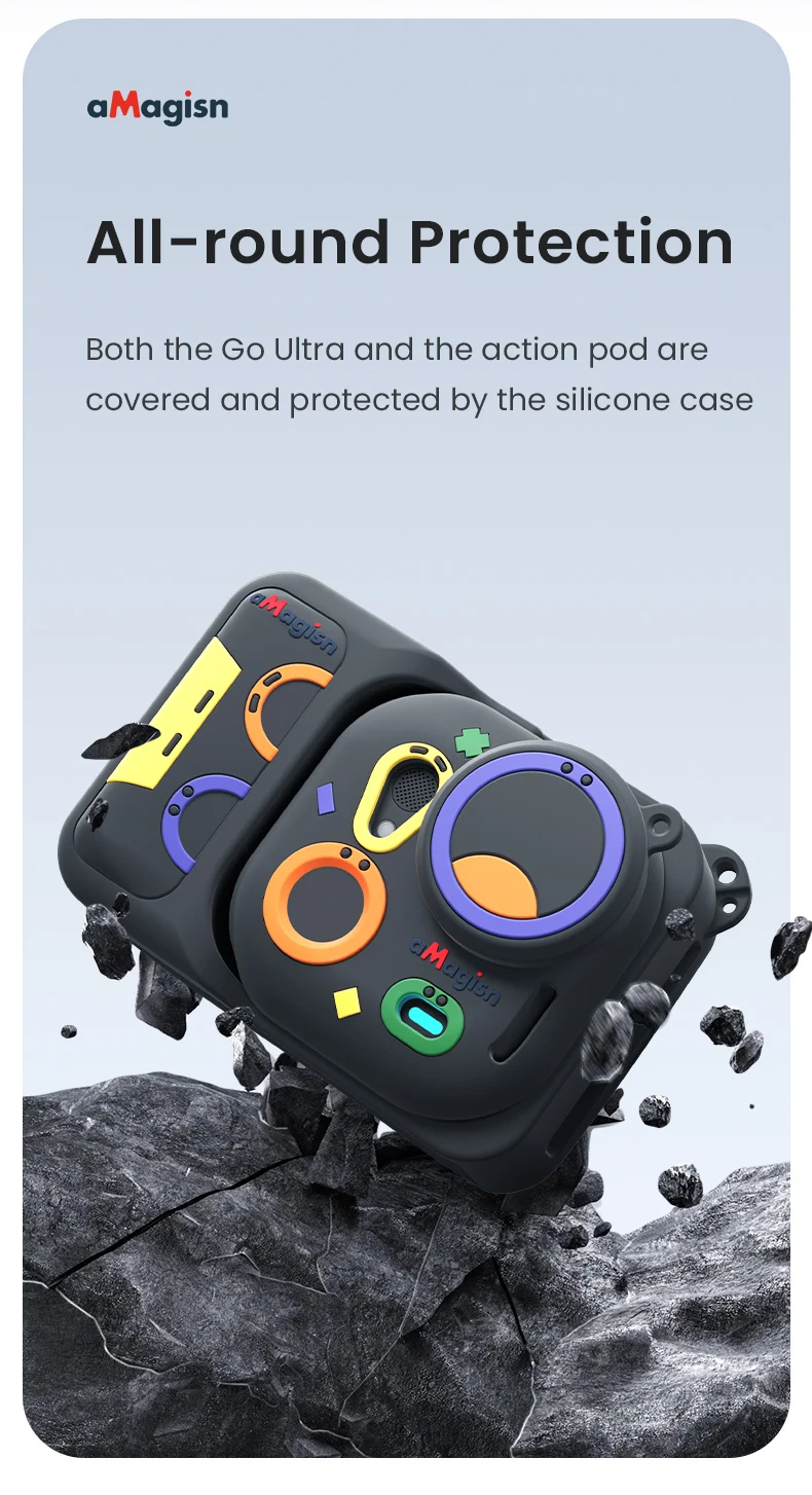 Protect your action camera with confidence using the Purilite Select Silicone Protective Case, designed for a precise fit and everyday durability. Crafted from high-quality, skin-friendly silicone, this case delivers full-body protection for the camera, lens, and action pod while maintaining complete usability.