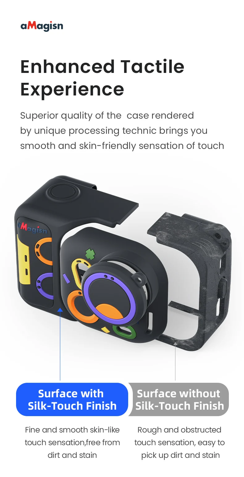 Equipped with an anti-loss strap and host tether, this protective case adds an extra layer of security—perfect for outdoor activities, travel, sports, and daily use. The specially treated surface resists dust and stains, offering a non-slip grip with a clean, premium feel that keeps your device looking new.