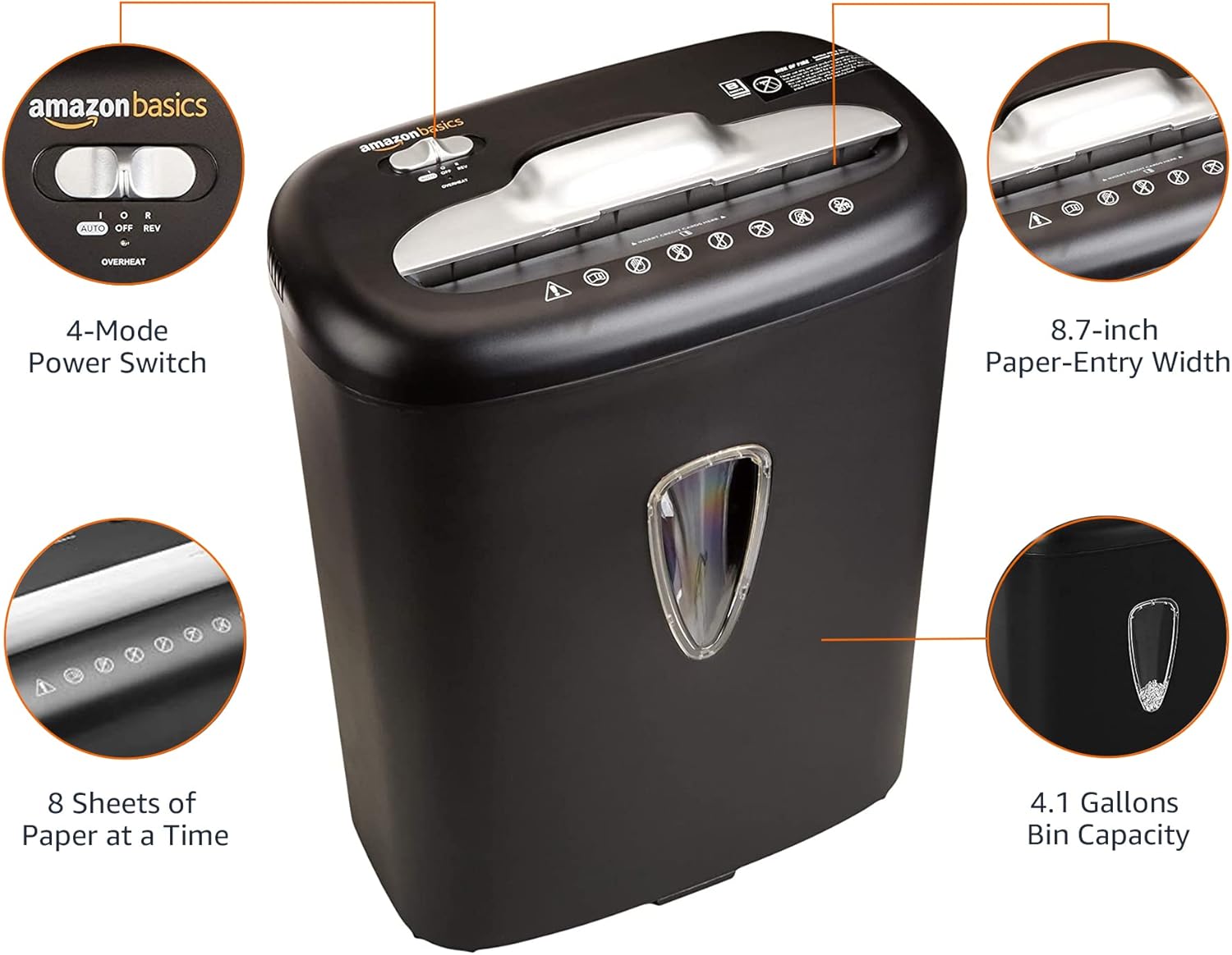 Amazon Basics 8-Sheet Cross-Cut Paper and Credit Card Home Office Shredder