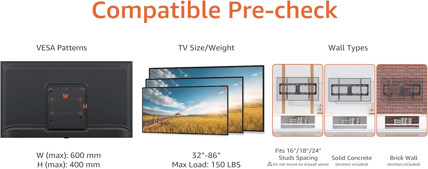 Amazon Basics Tilt TV Wall Mount with Horizontal Post Installation Leveling for 32-Inch to 86-Inch TVs