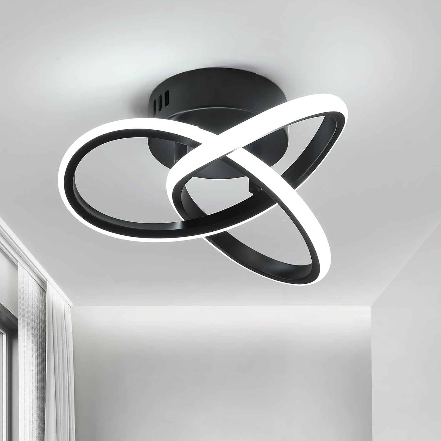 AMZASA Modern LED Ceiling Light Fixtures Black Semi Flush Mount Ceiling Lamp Hallway Lights for Bedroom Bathroom Entryway Closet Balcony Stair Curved Design15WPL17-B0C2BKXBP7