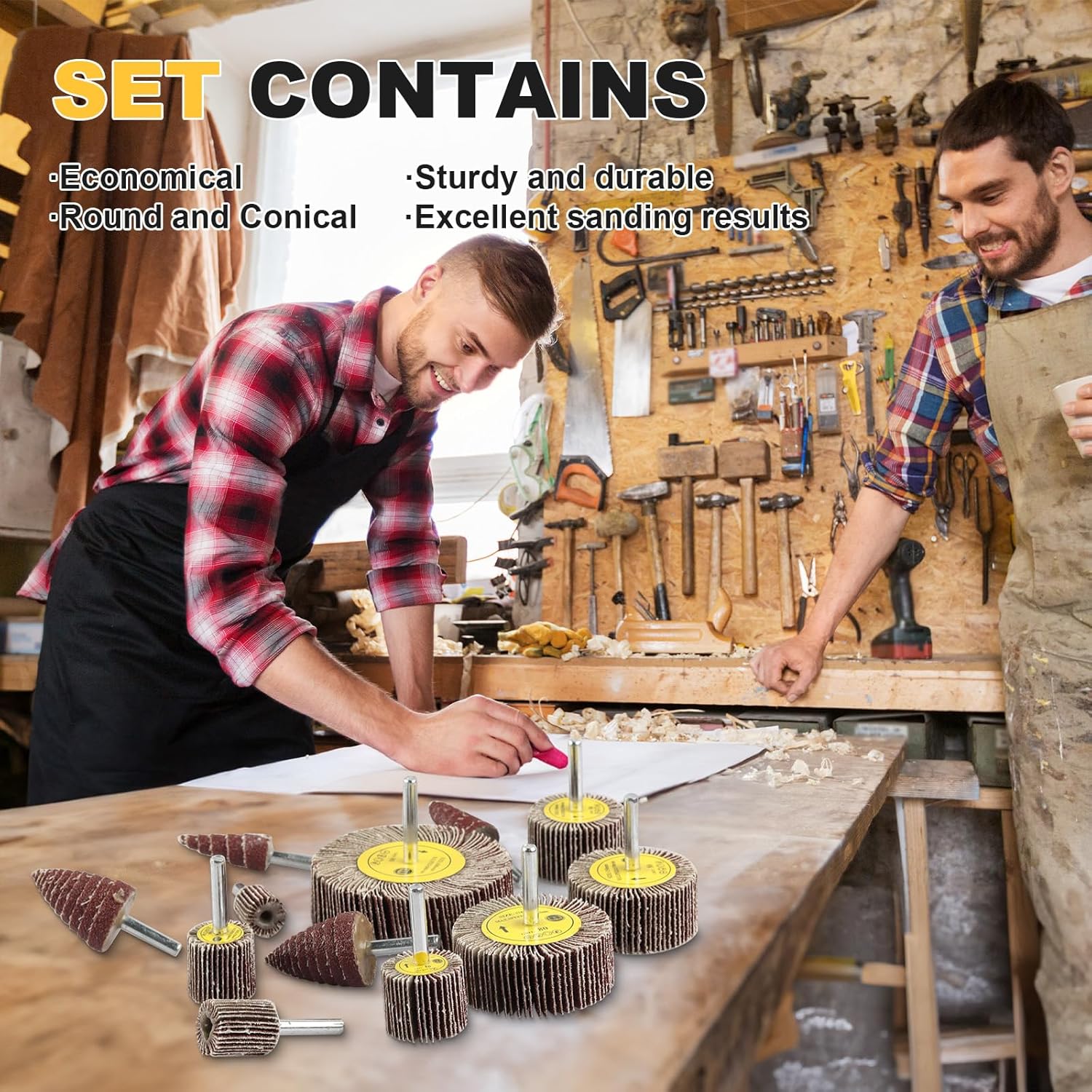 - 【Valued Flap Wheel Set】 The sanding wheel set contains 4 sizes of Cone Shape Abrasive Flap Wheel: 1.2 inch, 1inch, 0.8 inch, 0.64 inch, each contain 2 pieces ; 8 sizes of flap wheel : 3.2 inch, 2.4 inch, 2inch, 1.6 inch, 1.2 inch, 1 inch, 0.8 inch, 0.64 inch.