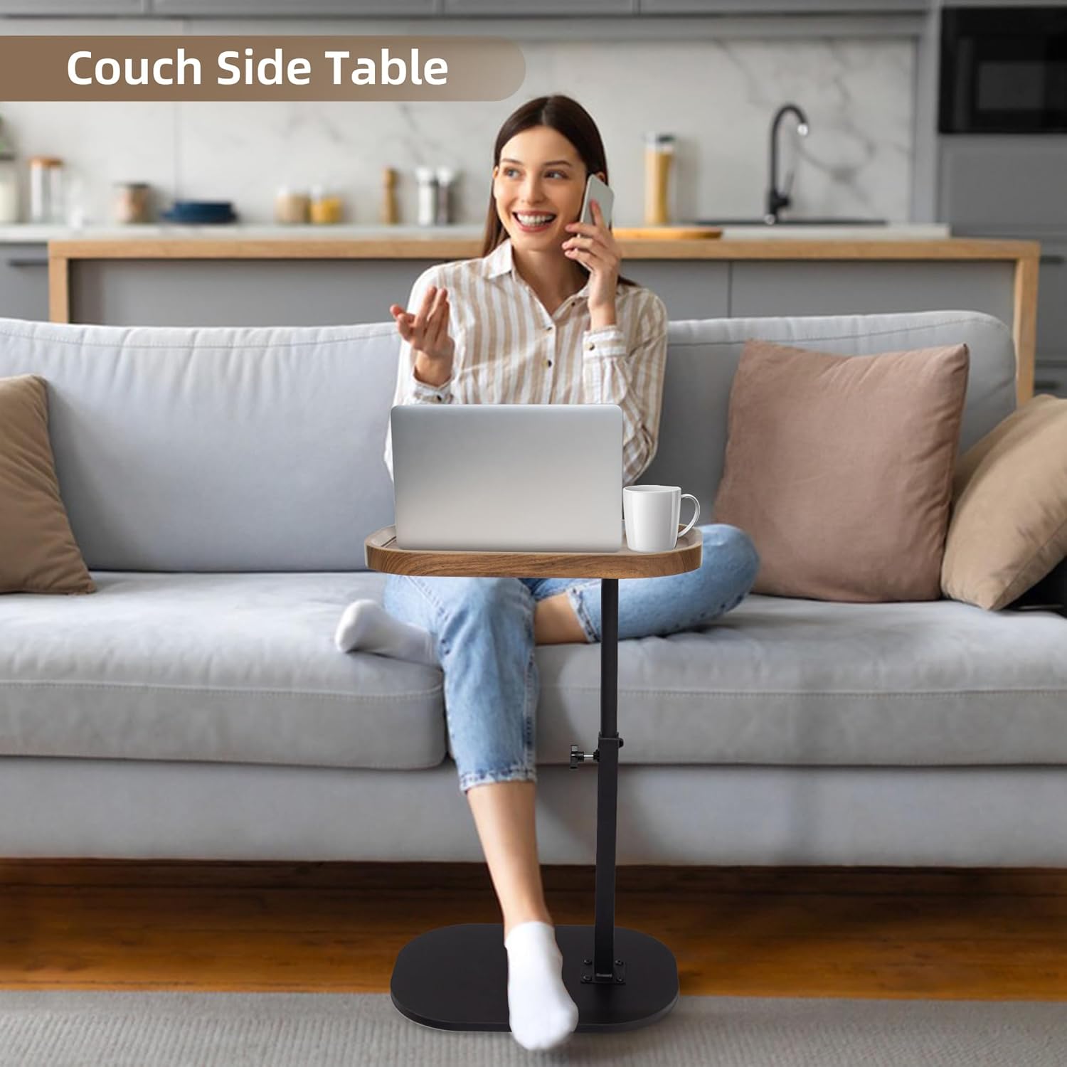 Aoligrace Night Stand Adjustable Height, 360°Swivel C Shaped End Table for Couch Sofa, Walnut Bed Side Table for Living Room Bedroom College Dorm (Walnut)