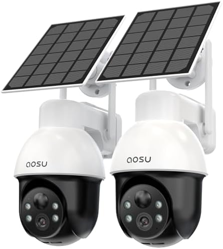 AOSU 3K/5MP Solar Security Cameras Wireless Outdoor, WiFi Camera Surveillance Exterieur for Home Security, Panoramic PTZ, Auto Tracking, Human/Vehicle Detection, Night Vision (2 Pack)PL17-B0CLJCZLJN