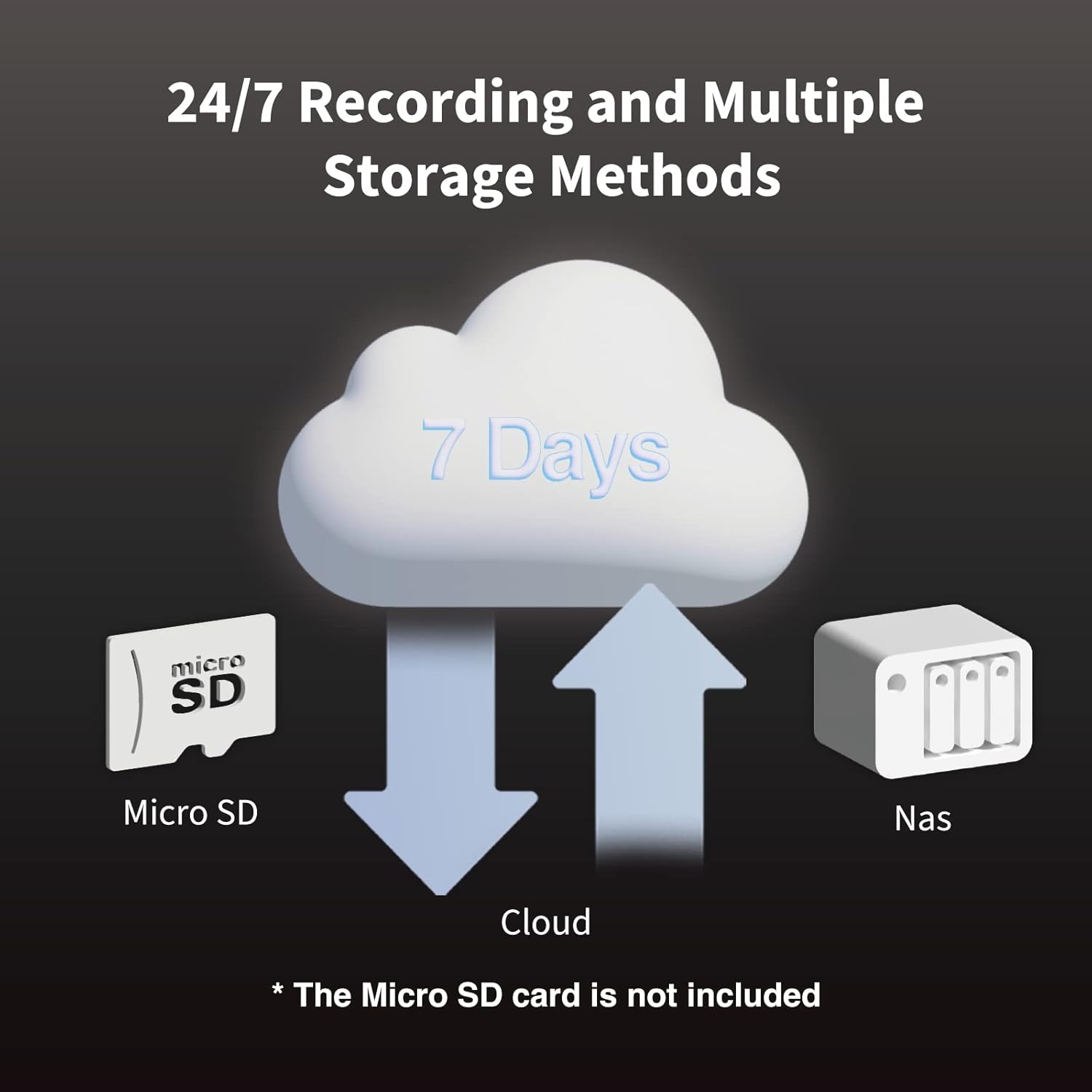 【24/7 Recording & Multiple Storage Methods】24/7 recording helps you to check your front door - Micro SD card(not included) must be inserted. 24/7 recording is only available in wired powering mode. The event-based cloud storage of up to 7 days is included. Micro SD cards of up to 512 GB are also supported by the chime repeater and cannot be accessed from outside. The G4 also supports local NAS storage using the Samba protocol ( a supported Micro SD card and SMB-compatible software are required.)