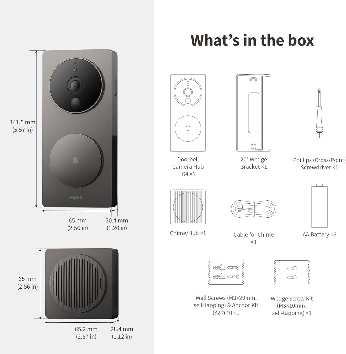【Supported HomeKit & Local Face Recognition】To record and playback using HomeKit Secure Video, a subscription to iCloud is required. Notifications can be sent to your Apple devices. The secure video doorbell camera G4 features local AI that can be used for face recognition alerts, automations and more. HomeKit, Alexa, Google Home, IFTTT are supported. (Connect G4 to Aqara home first, then enable Google Home/ Alexa skills. For Apple Home integration, ensure G4 & Home hub are on the same network.)