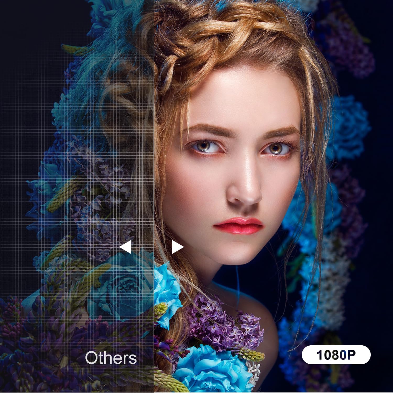 - 【Sealed Optical Engine & Native 1080P & 300 ANSI Lumens】 The PR350 mini projector features a fully sealed optical core that is dust-resistant, effectively reducing image quality degradation and black spots. Enjoy the vibrant colors and high brightness of 300 ANSI lumens from this 1080p projector. With native 1080P support and compatibility for 4K videos, it provides an exceptional viewing experience with remarkable shadow detail – a true home theater experience.