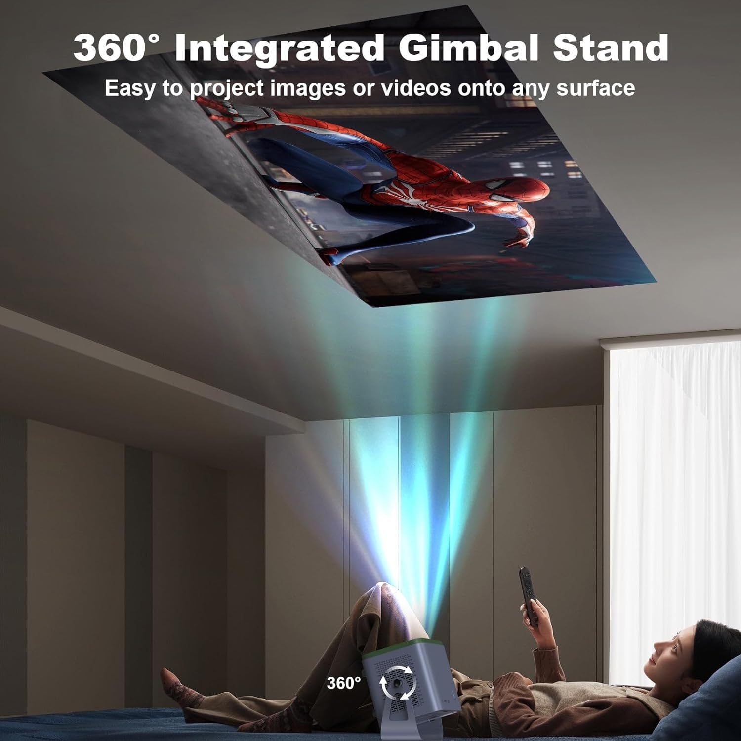 【Auto Focus/Electric Focus】 Native 1080P Projector with WiFi 6 and 360°Rotation Stand, Upgraded Bluetooth 5.3,Portable Projector with 6D Keystone, Mini Projector for TV Stick/PS5/HDMI/Phone