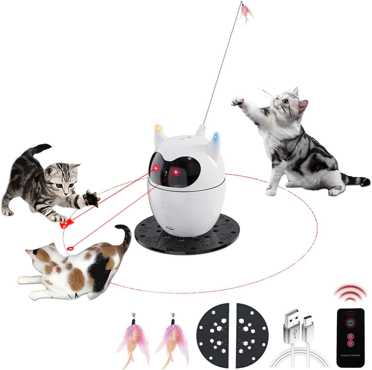 Automatic Cat Toy, 2in1 Rechargeable Interactive Cat Toy - Rotating Feather & Dual Laser, Remote Control, Cat Laser Toy for Indoor Cats Kittens