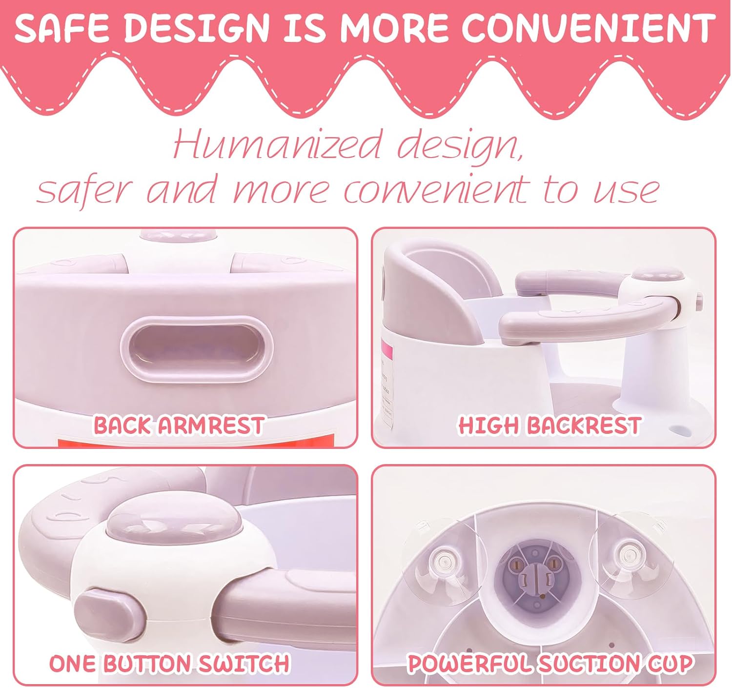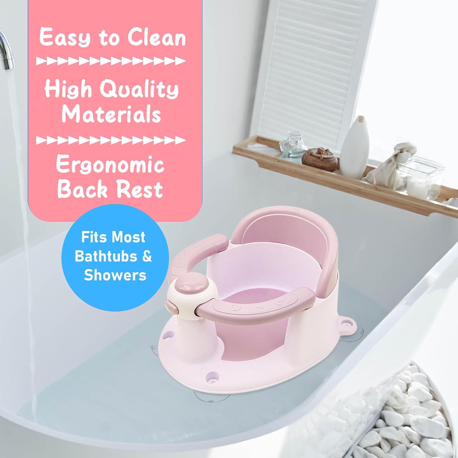 Baby Bath Seat for Babies 6 Months & Up, Non-Slip Infant Toddler Baby Bathtub Bath Seat for Sitting Up, Baby Tub Seat with Suction Cups for Shower (Pink)