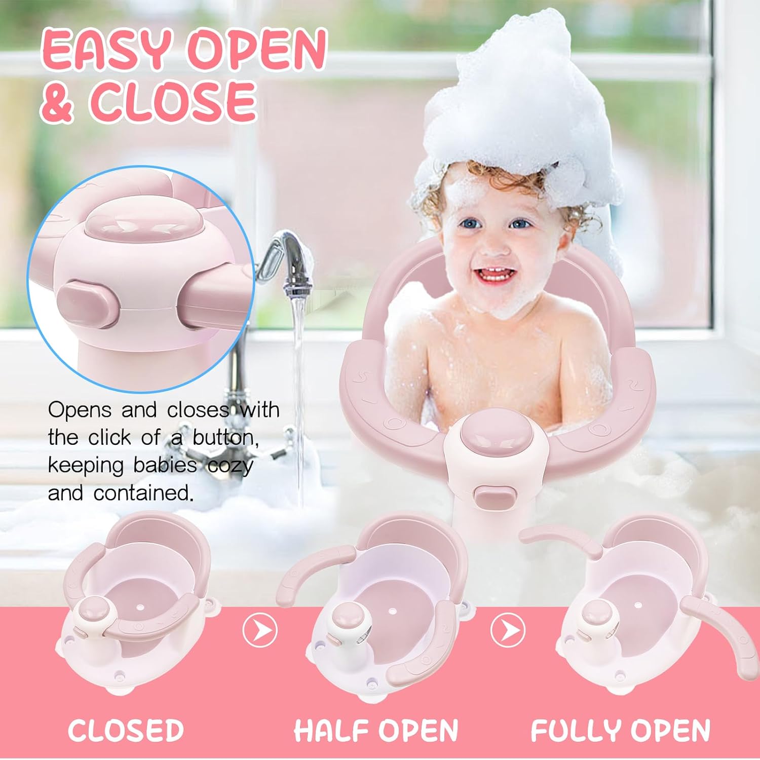 - Portable and Foldable: This Bath chair features a simple and quick opening and closing mechanism, making it effortless to place your baby in the seat and solving the problem of inconvenient baby baths while on the move. It can be used in the bathtub, living room, or shower room, making it an ideal choice for travel, vacations, hotel rooms, and home use.