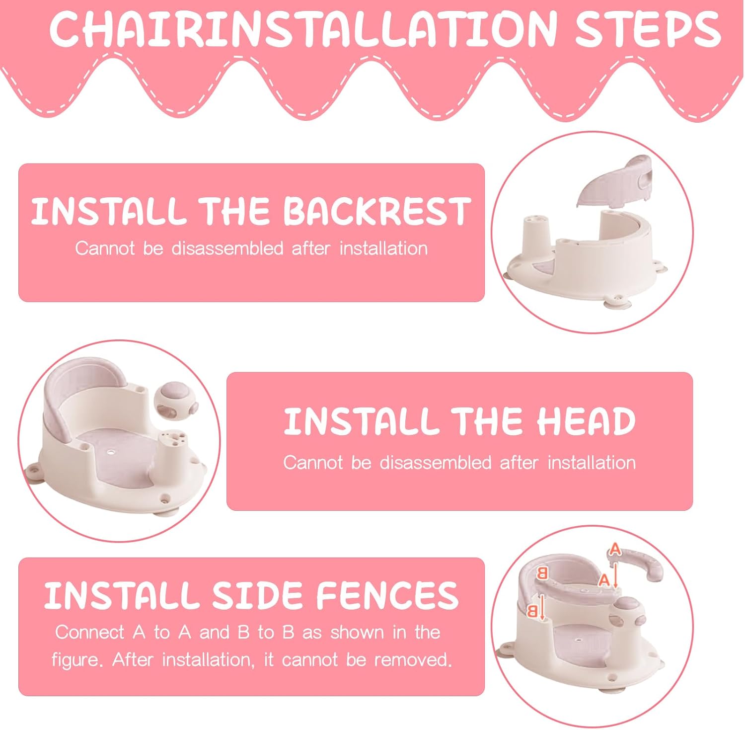 - Safety Material: This Non-slip bath chair is made of non-toxic PP+TPR material, which brings 100% safety and health to the babies. Soft and comfortable, low temperature resistance, good high temperature properties. Ideal for babies 6 months & up.