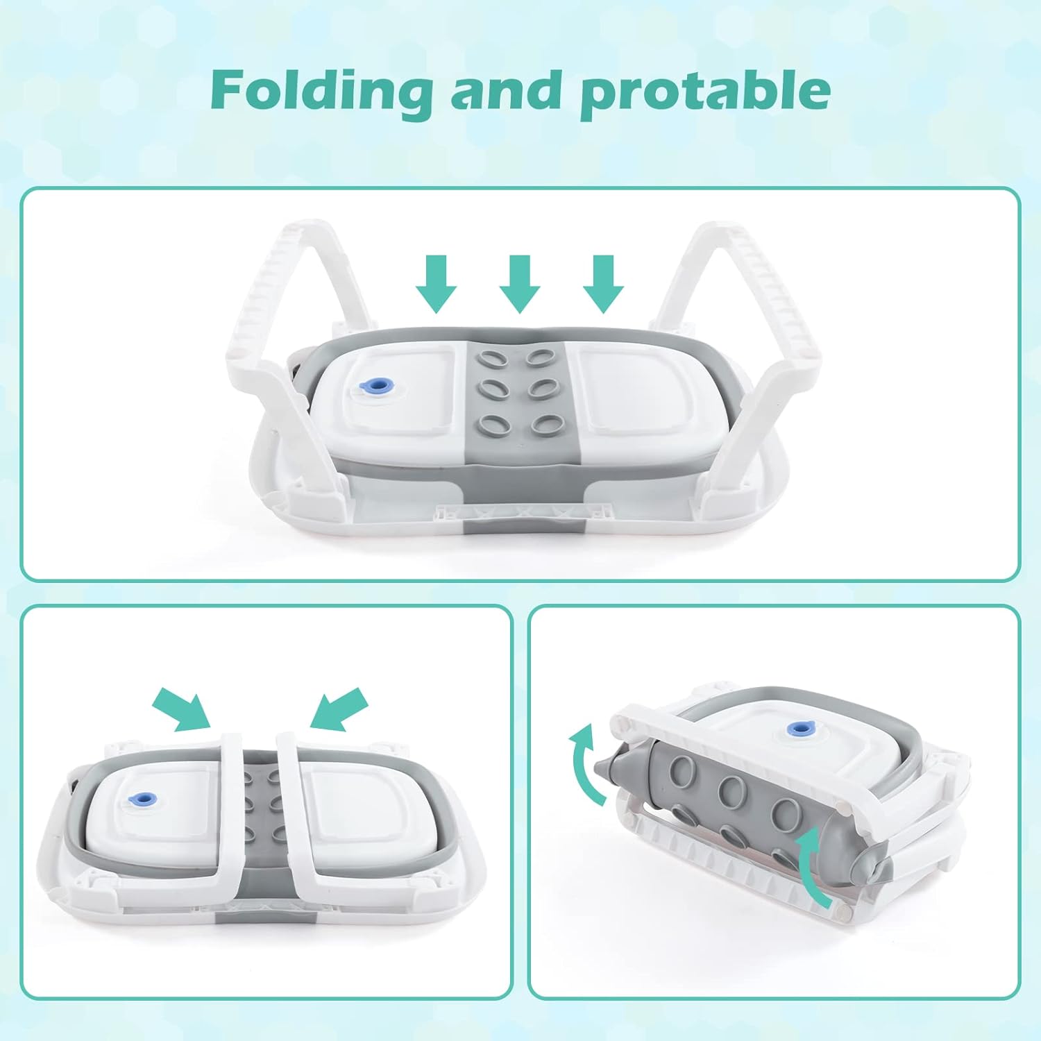 - Size information: BathTub dimensions is 62cm x 40cm x 20cm,which is big enough for your baby to enjoy bath time, bathtub is foldable and only 3.7 pounds,easy to carry