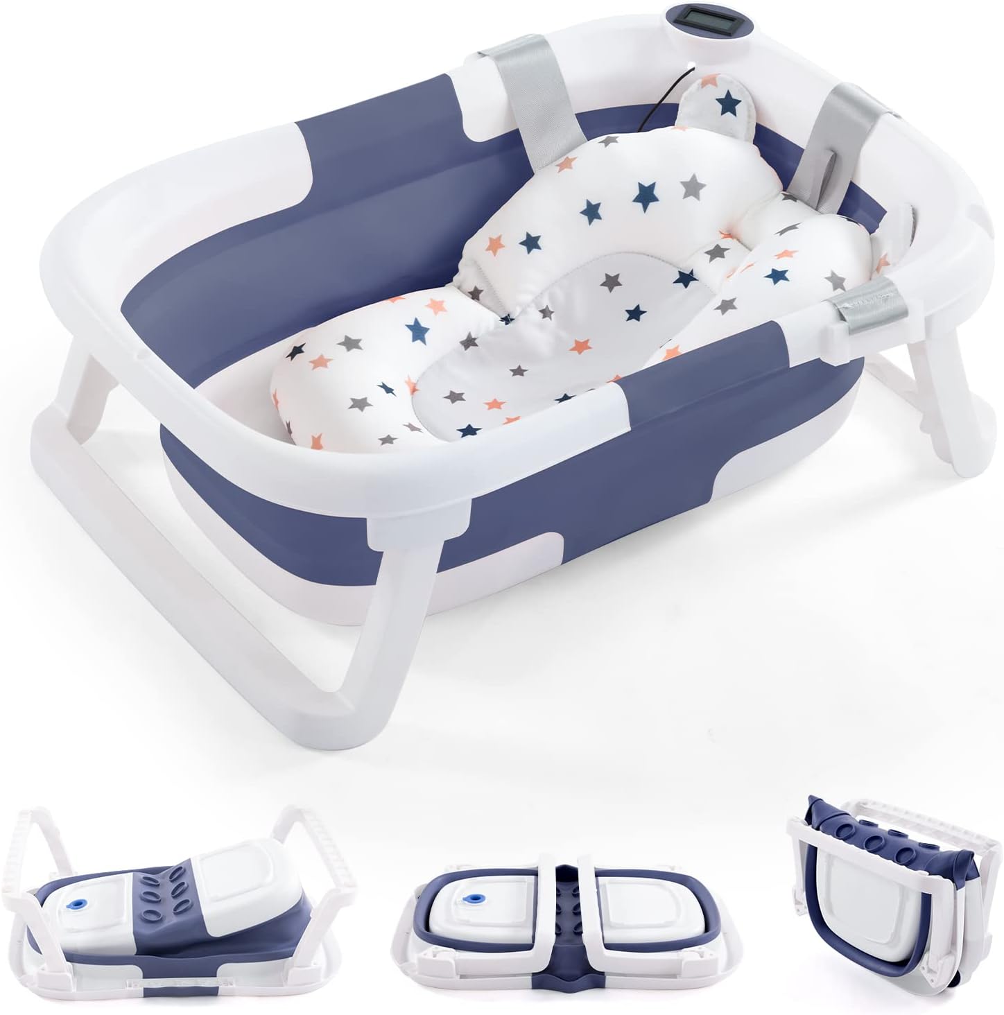 - Smart design:We design a temperature sensor for this Baby Bathtub,with the Temperature Display, keeping you aware of Bathtub water temperature situation with just a glance.