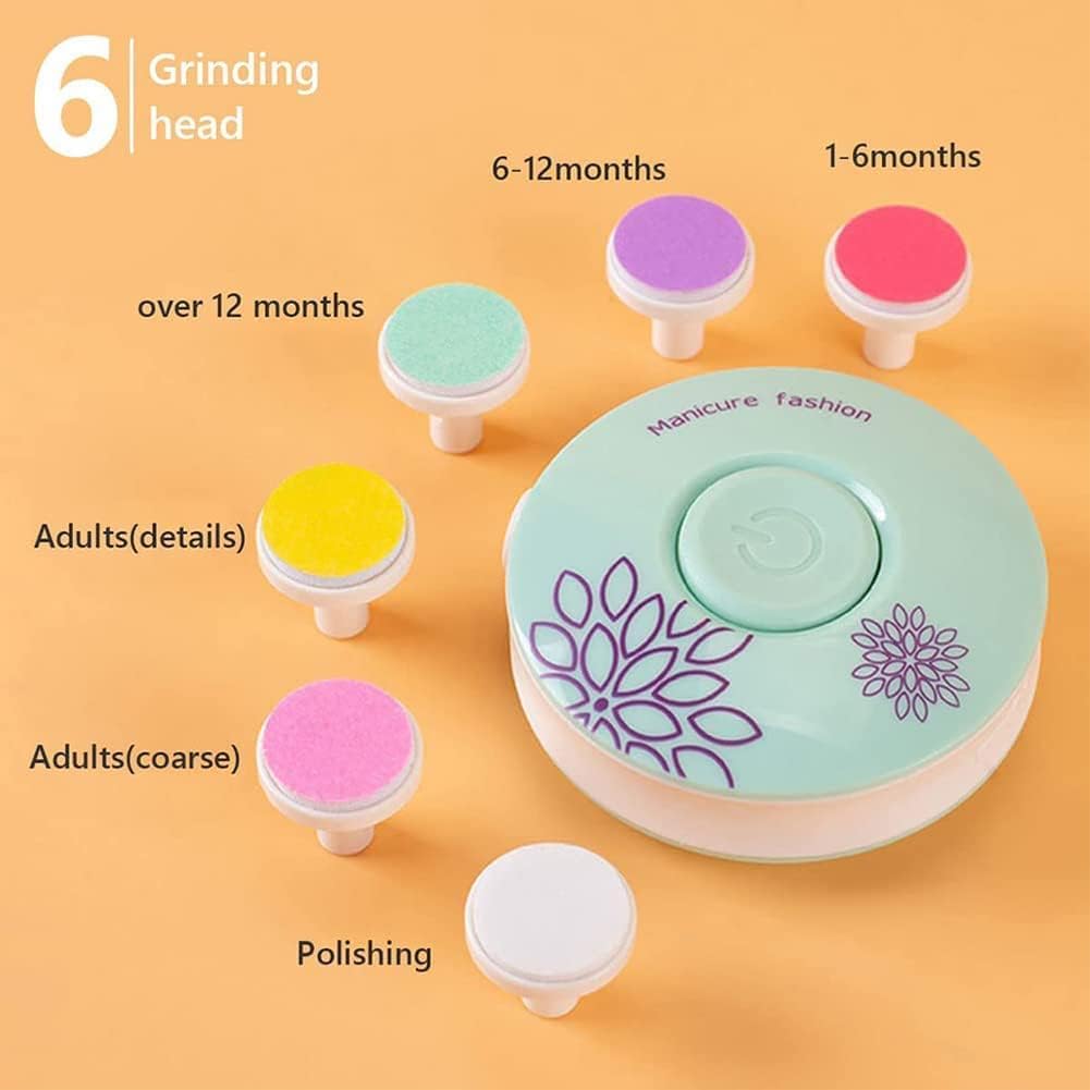 • 6 In 1 Set: Electric nail file in different colours are designed for the different growth stages and different needs of children. The 6 nail clippers heads are suitable for all age groups.