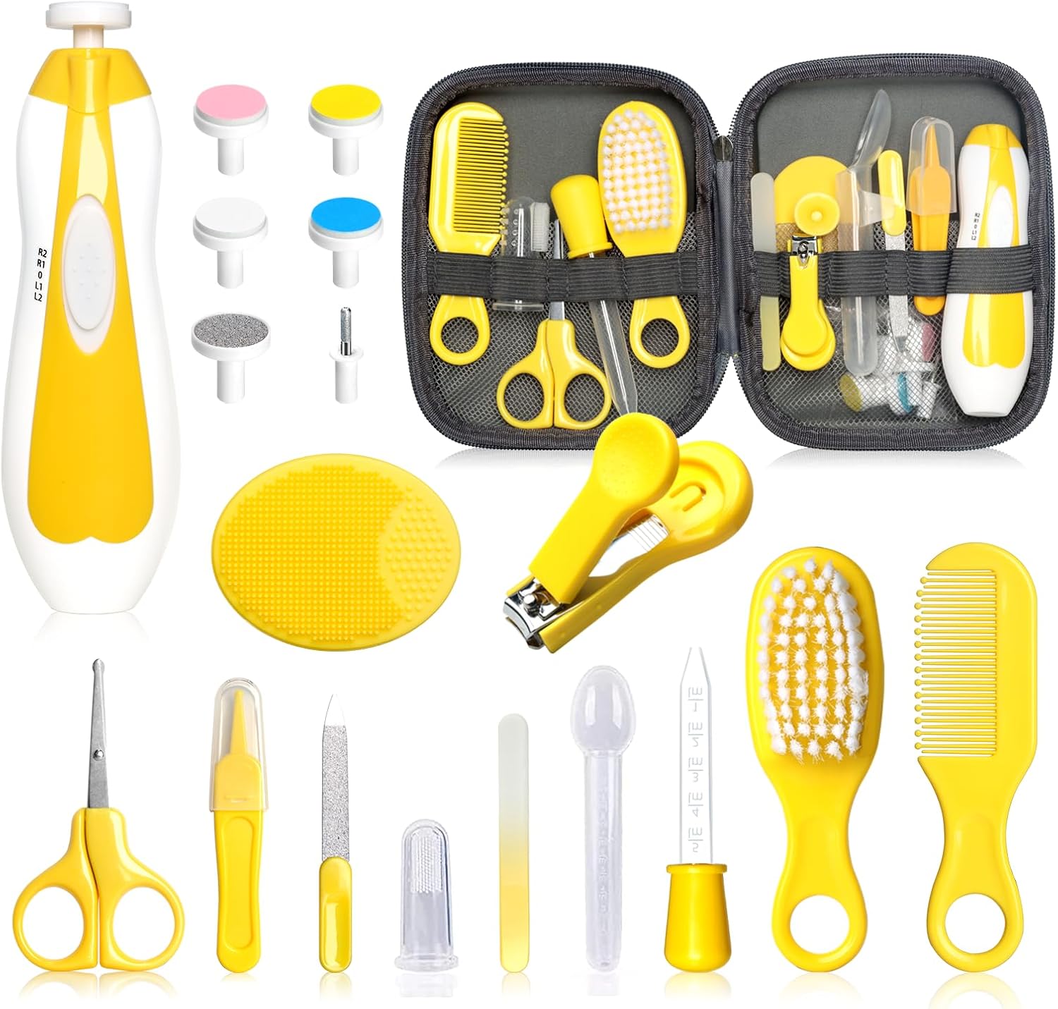 【19 in 1 BABY CARE SET】Baby grooming set includes electric nail trimmer, baby comb, baby brush, baby silicone brush, baby nail clipper, nail file, baby tweezers, baby scissors, finger toothbrush, etc. Each of them has a great practical value.