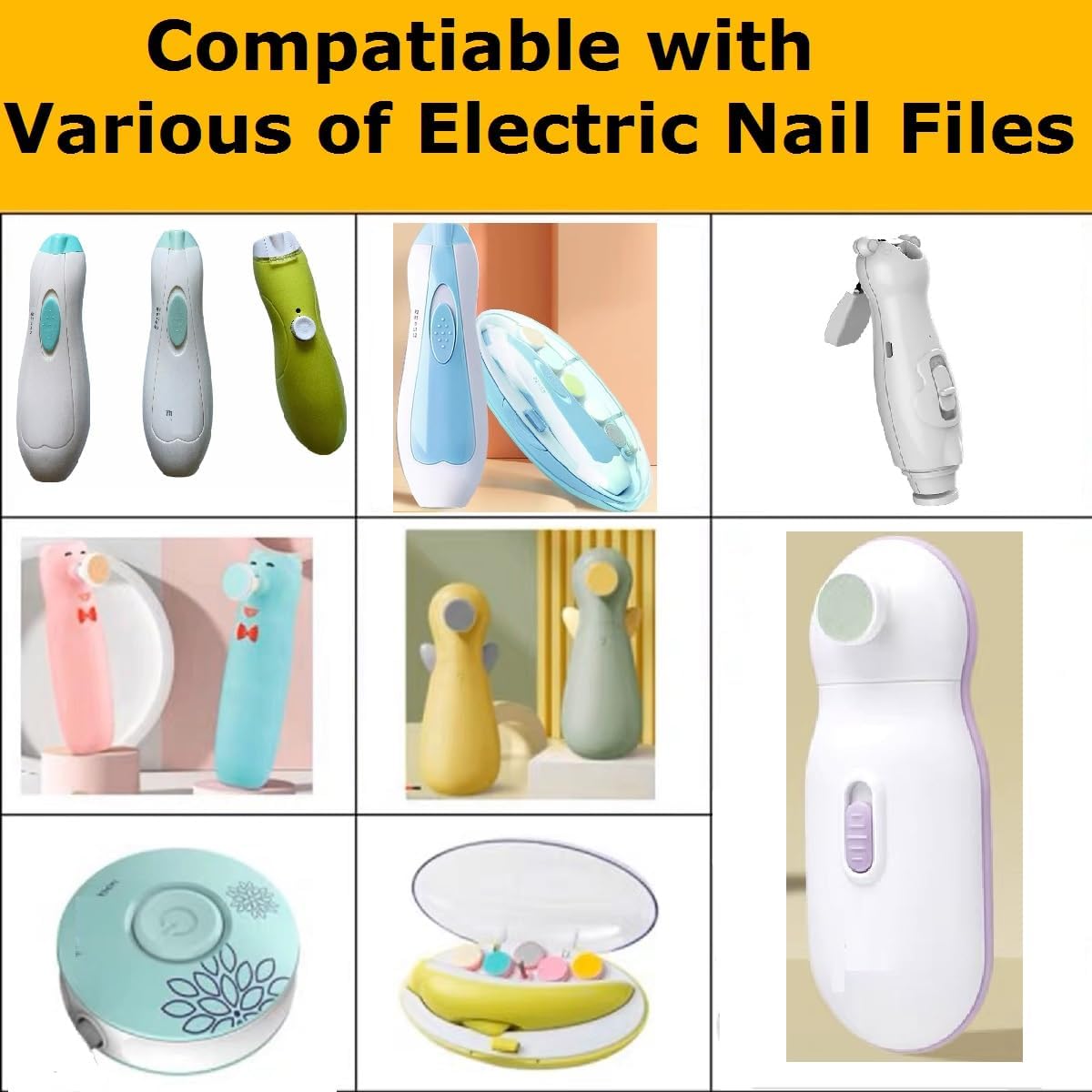 Fits and Compatiable with Royal Angels , for Little Martins Drawer's , for Combi ,HOMET-TEK , BabySteps , Anjou , ELERA , Fzcono , Lil' Jumbl , Cadrim , Smallshow, GBaoY , ThinkMax , umsky, BMAZON , Momcozy and Jaybva baby nail file and other standard electric baby nail file
