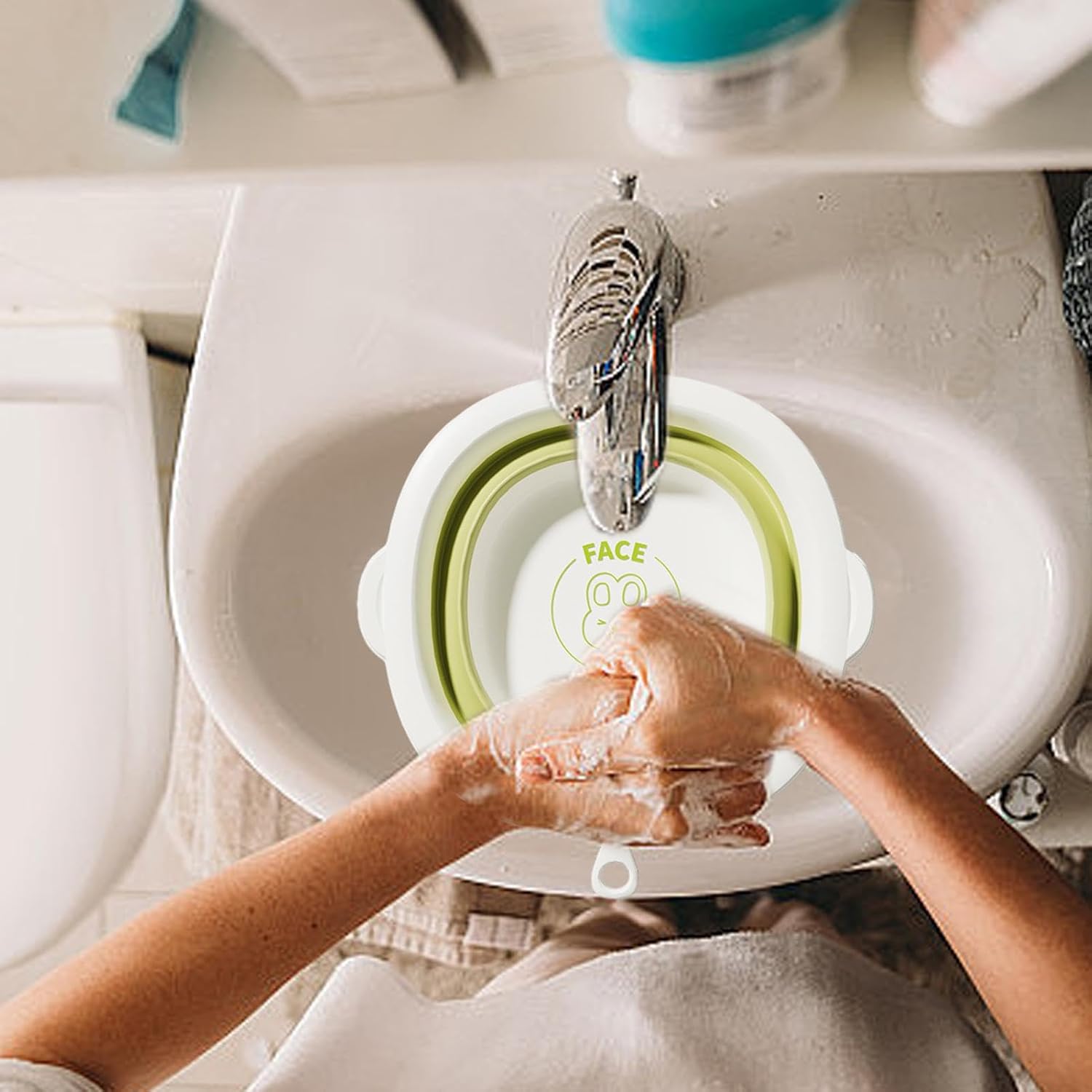 - Distinctive Wash Basin: Experience the perfect combination of pattern and washbasin with our foldable wash basin. The one-piece film inner pasting process ensures no fading, while the frosted surfaces design provides a gentle and delicate touch. Plus, it's long-lasting like new.