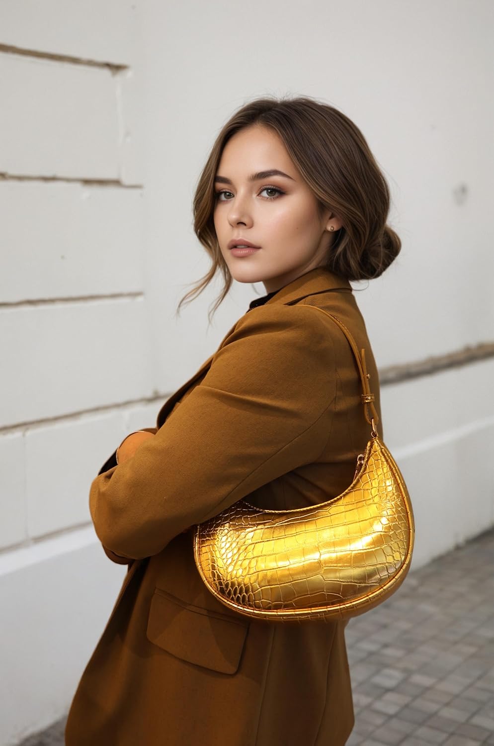 - Material:High quality Crocodile Pattern PU;Gold color plated hardware