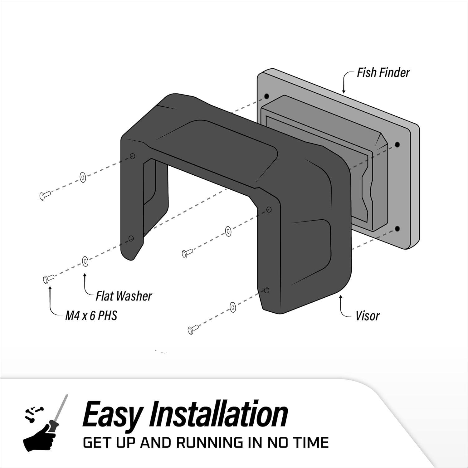- DURABLE AND EASY TO INSTALL: Crafted from sturdy material, this visor withstands harsh marine environments. It is simple to install on Garmin fishfinders, whether using a flush mount or gimbal mount setup, offering both reliability and convenience.