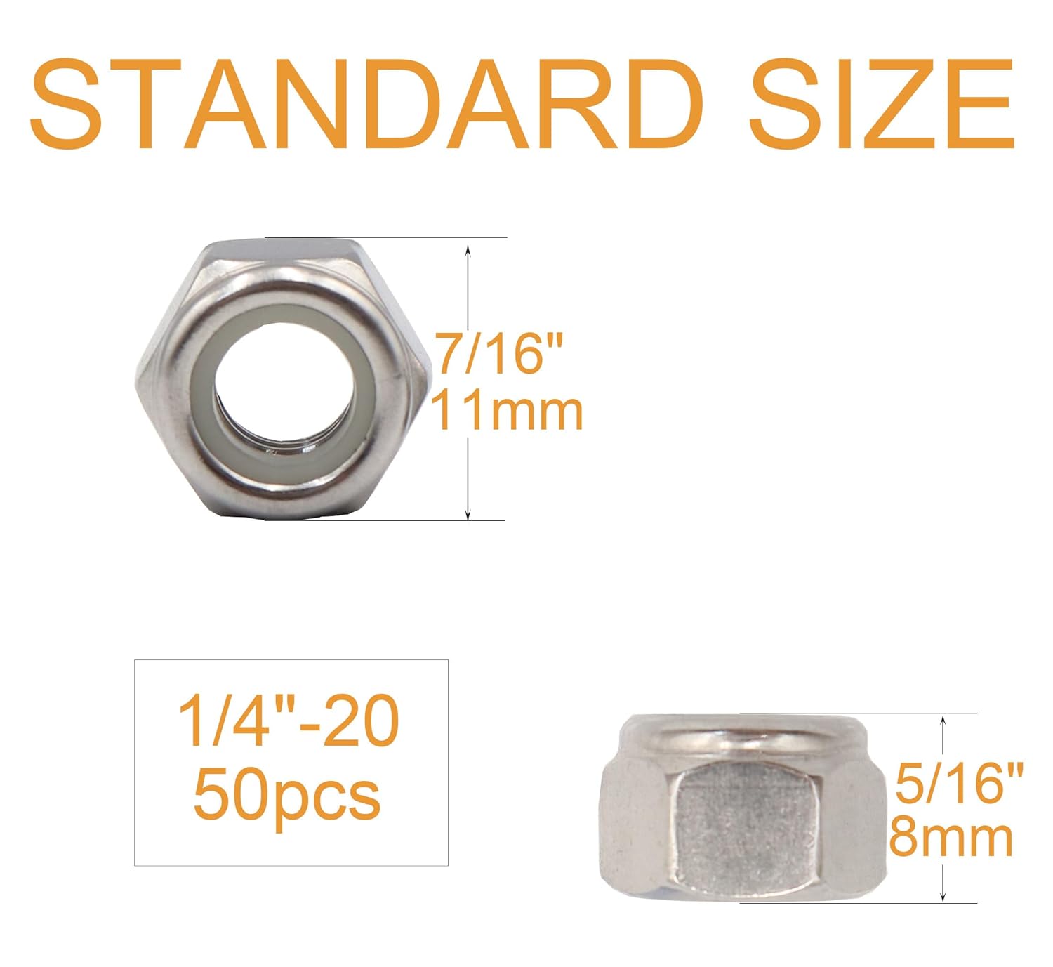 binifiMux 50pcs 1/4-20 Nylon Inserted Self Locking Nuts 304 Stainless Steel
