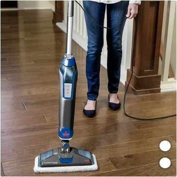 This Bissell PowerSteamer Deluxe Steam Mop provides an easier way to tackle those tough, stuck-on messes with the detachable SpotBoost Brush. Cleaning with the natural power of steam sanitizes* floors, eliminating 99.9% of germs and bacteria* without having to use harsh chemicals. For those who enjoy a fresh scent while cleaning, insert the included Spring Breeze Fragrance Disc into the built-in tray to release a burst of scent. Your Deluxe Steam Mop is safe to use on sealed hard floors including hardwood, linoleum, ceramic, tile, marble, and granite.