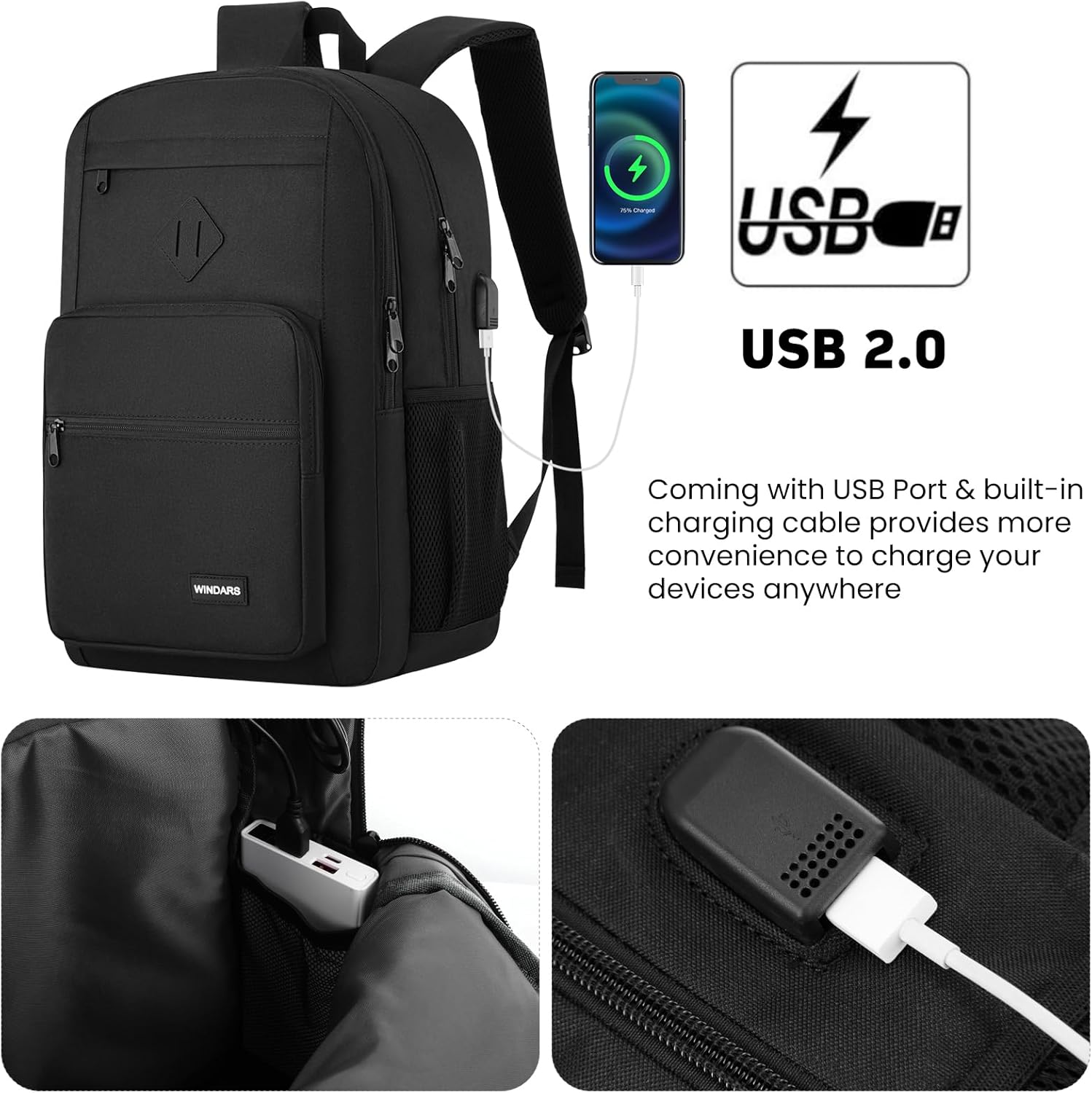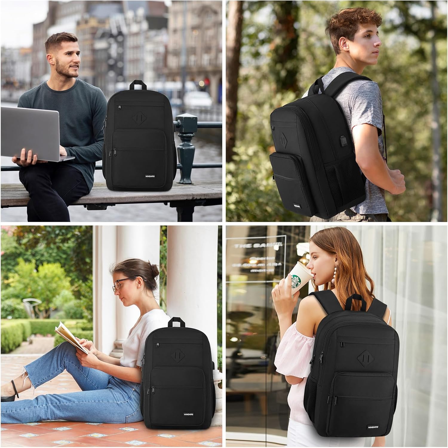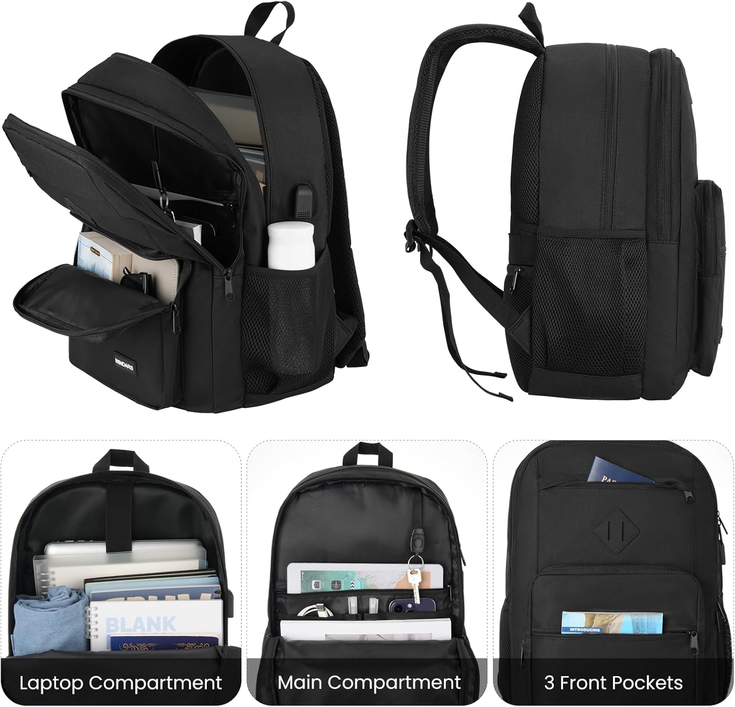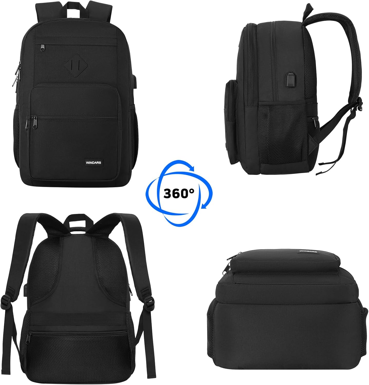 - Black Backpack for Men Women, Durable Casual School Backpacks Teens Boys and Girls Classic 15.6 Inch Laptop Bookbag with USB Charger for College High School Work Travel